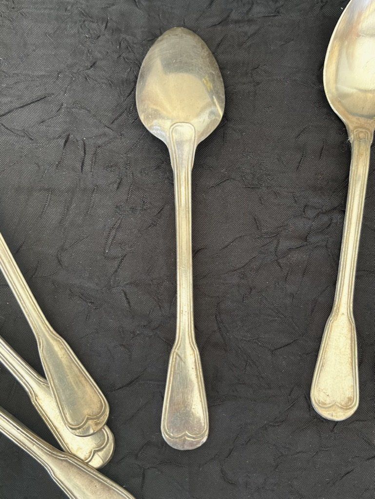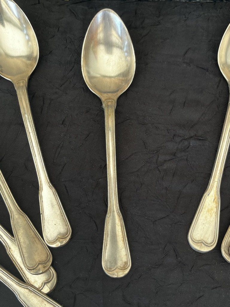 Les cuillères sont bel état vintage. L'argenture est bien conservée, sans désargenture majeure, à nettoyer. Présence de micro-rayures d'usage normales pour des pièces anciennes.