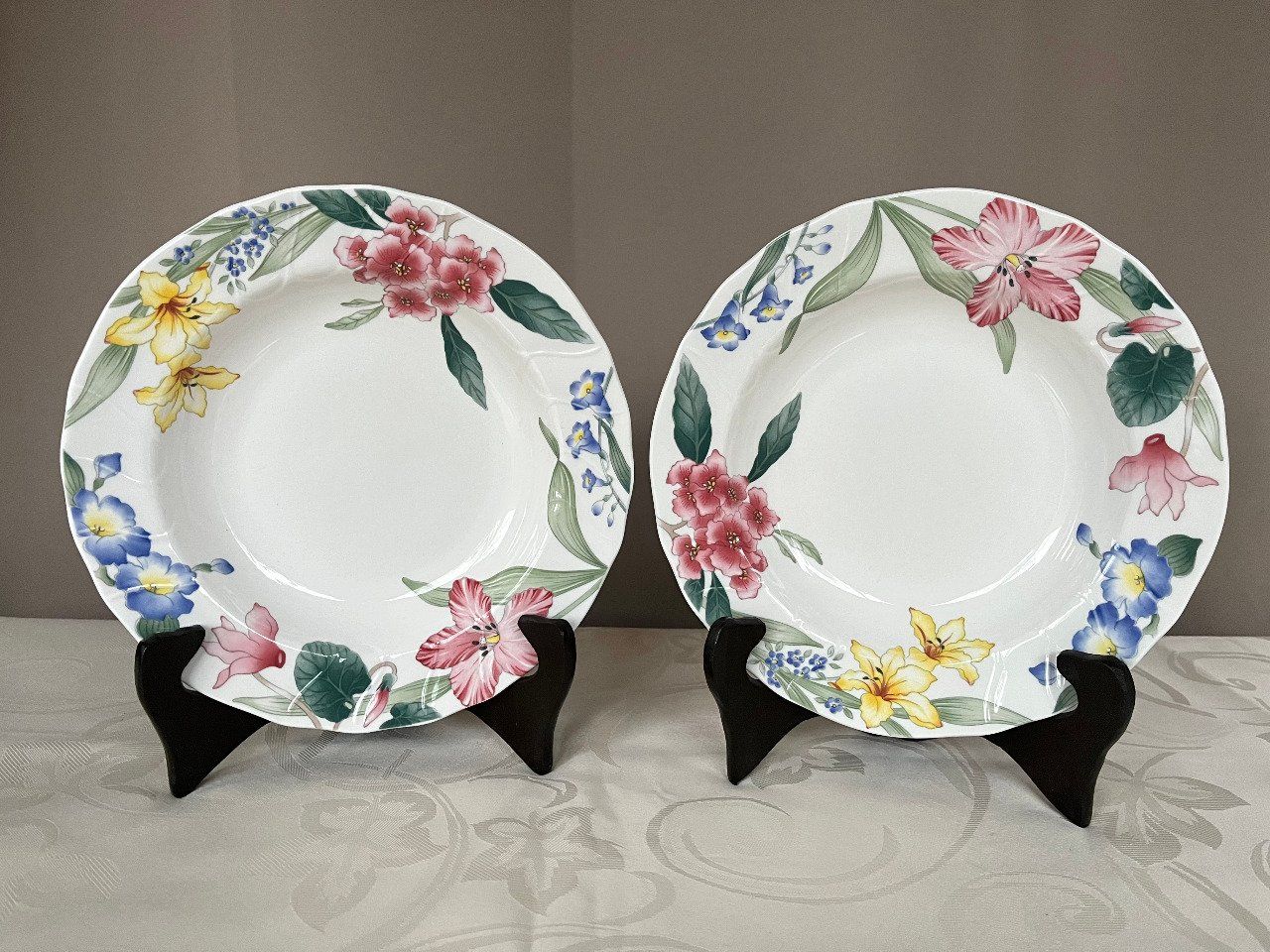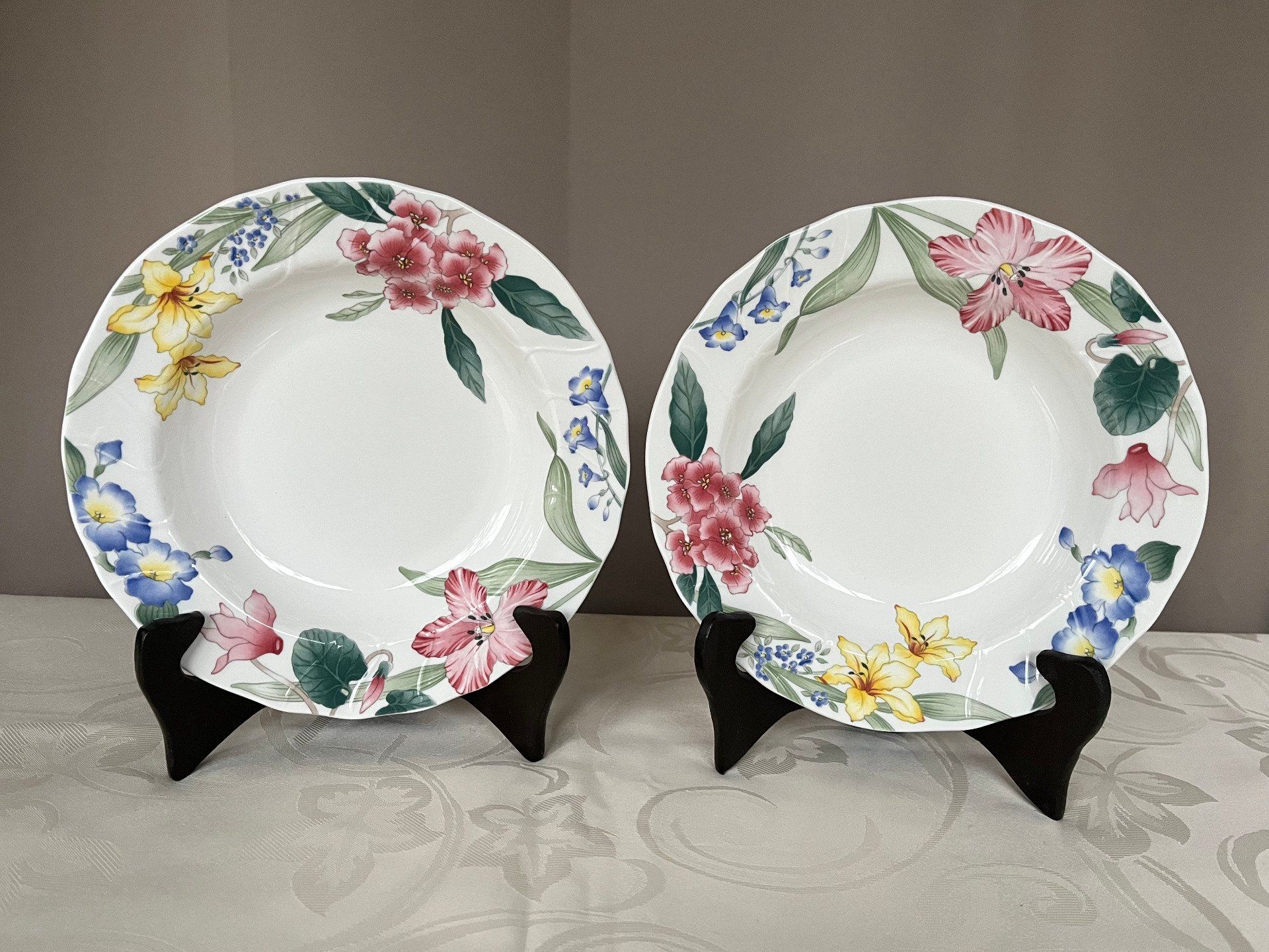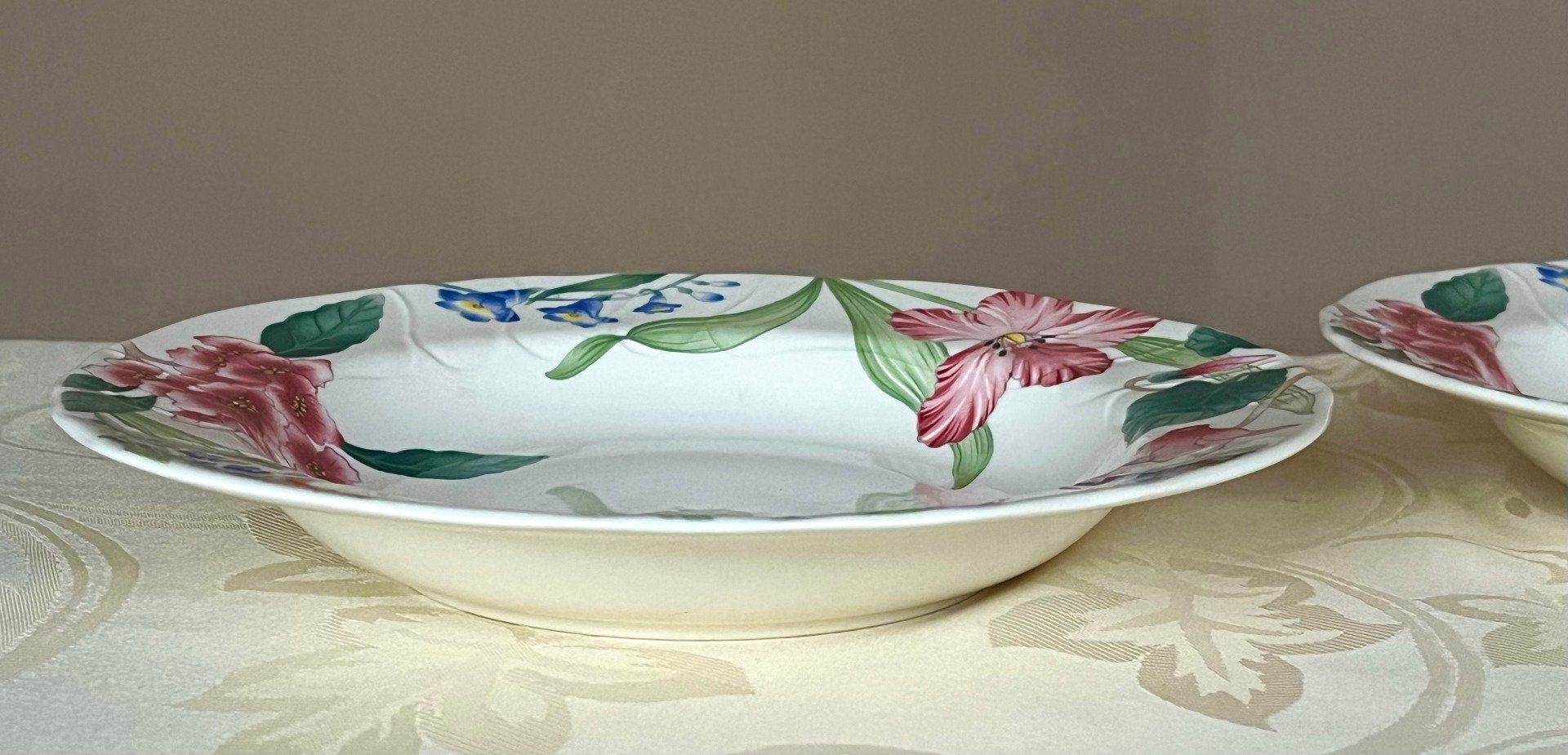 Magnifique lot de deux assiettes creuses issues de la prestigieuse manufacture Villeroy & Boch, collection Flora Bella.
