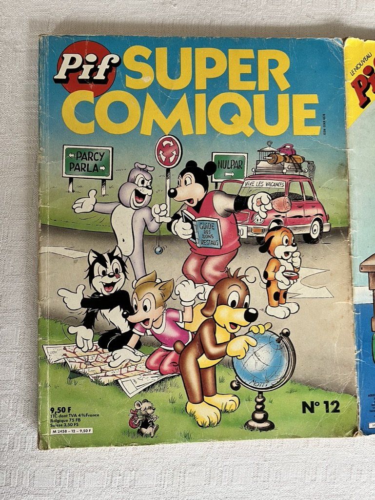 3 magazines de Pif, 2 super comique et 1 spécial 100% comique. 2 albums de 1983 et 1 de 1981. Pour revivre les diverses aventures présentées dans ces magazines très distrayants. En bon état général, ils ont été lus et relus, quelques défauts de vie ...