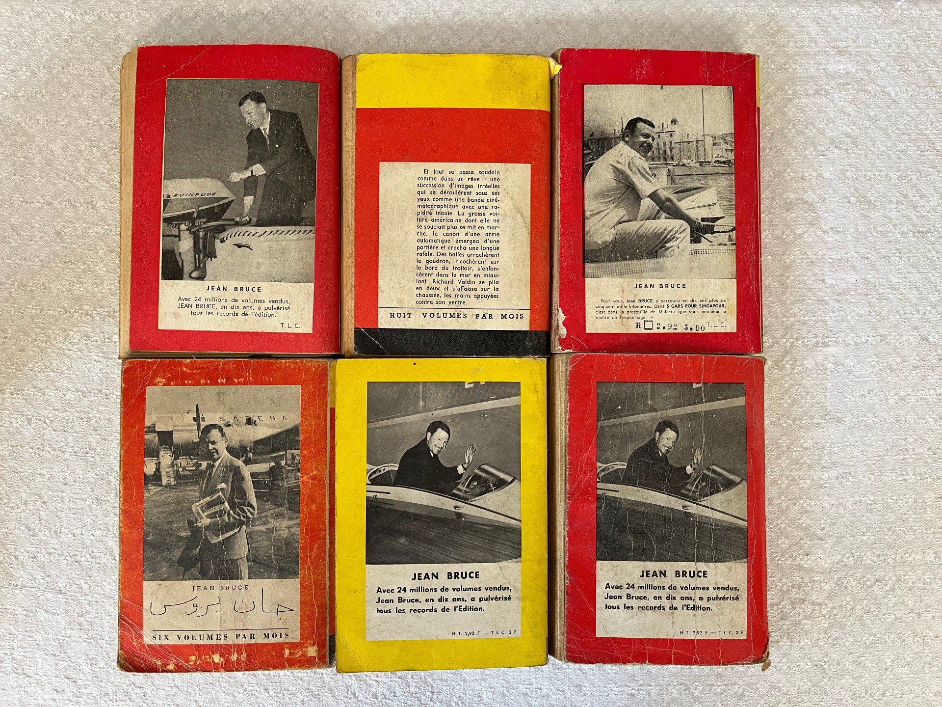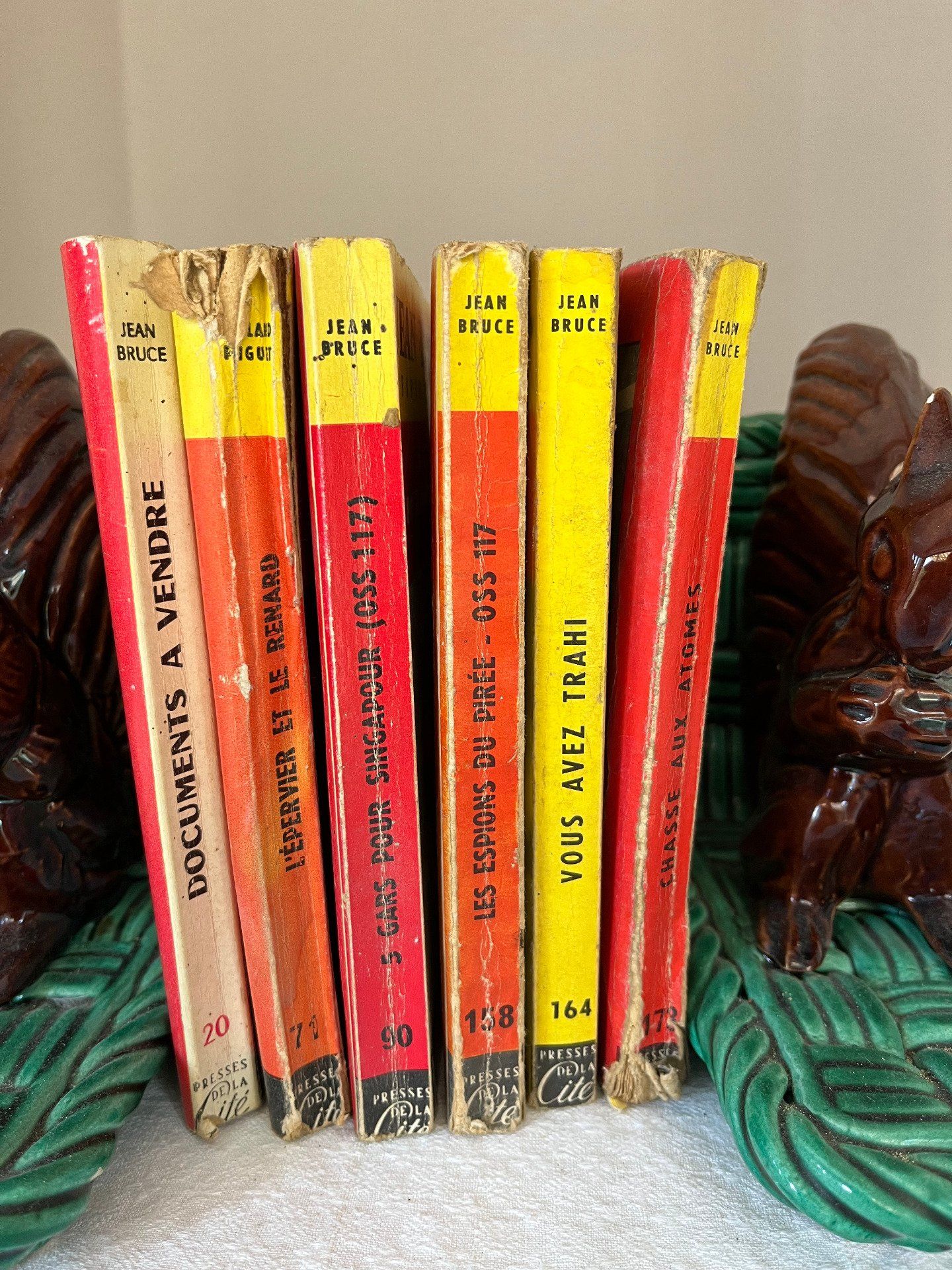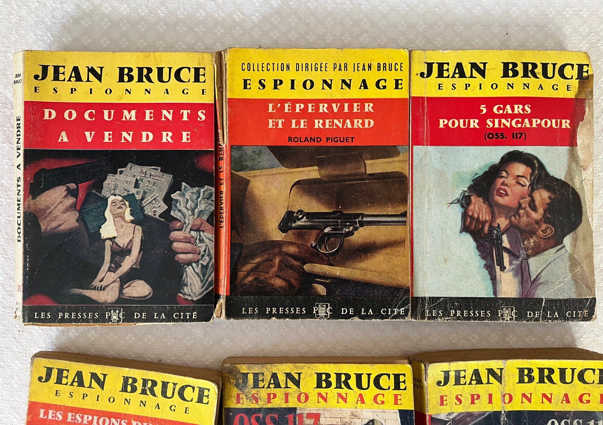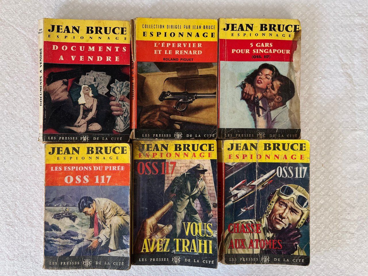 Lot de 6 livres par Jean Bruce, romans qui met en scène un espion américain, nom de code OSS 117, de son vrai nom Hubert Bo.. Série qui a fait l'objet de nombreuses adaptations, notamment cinématographiques et télévisées. Voir description