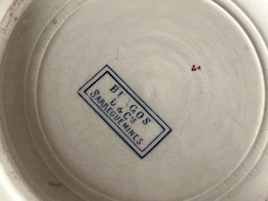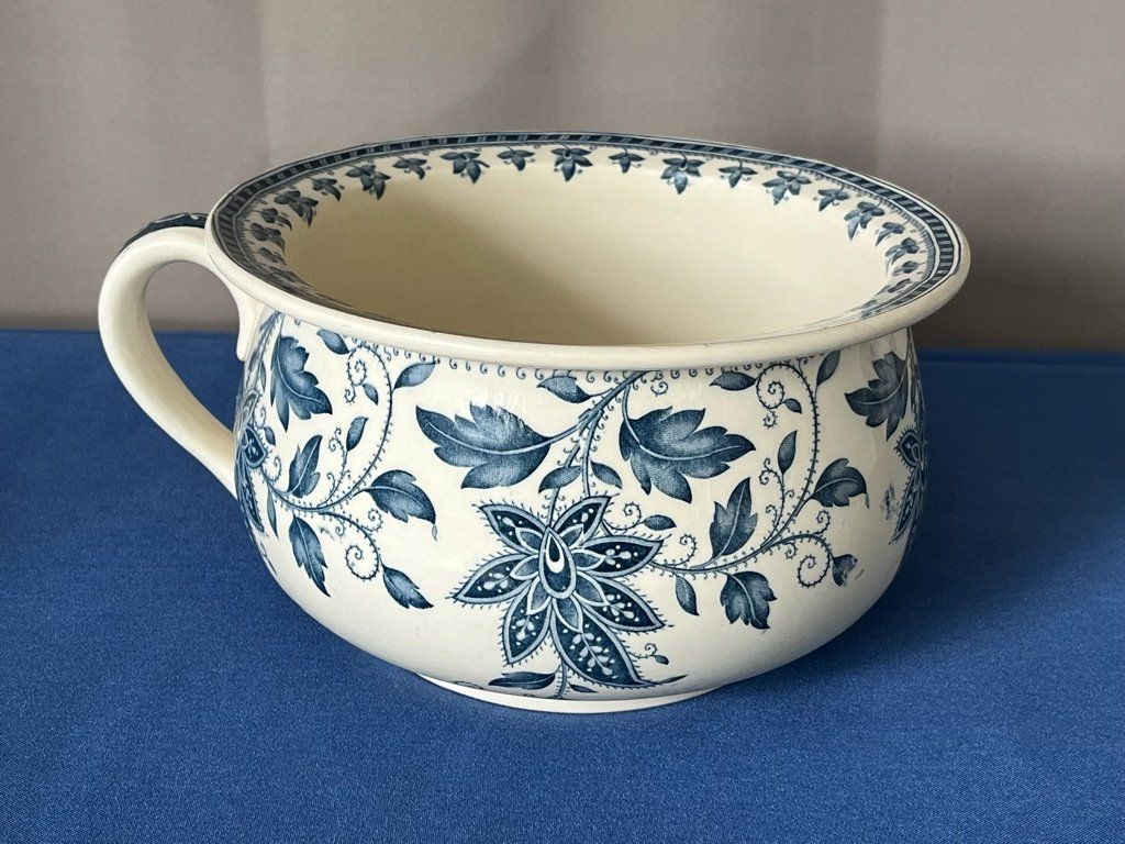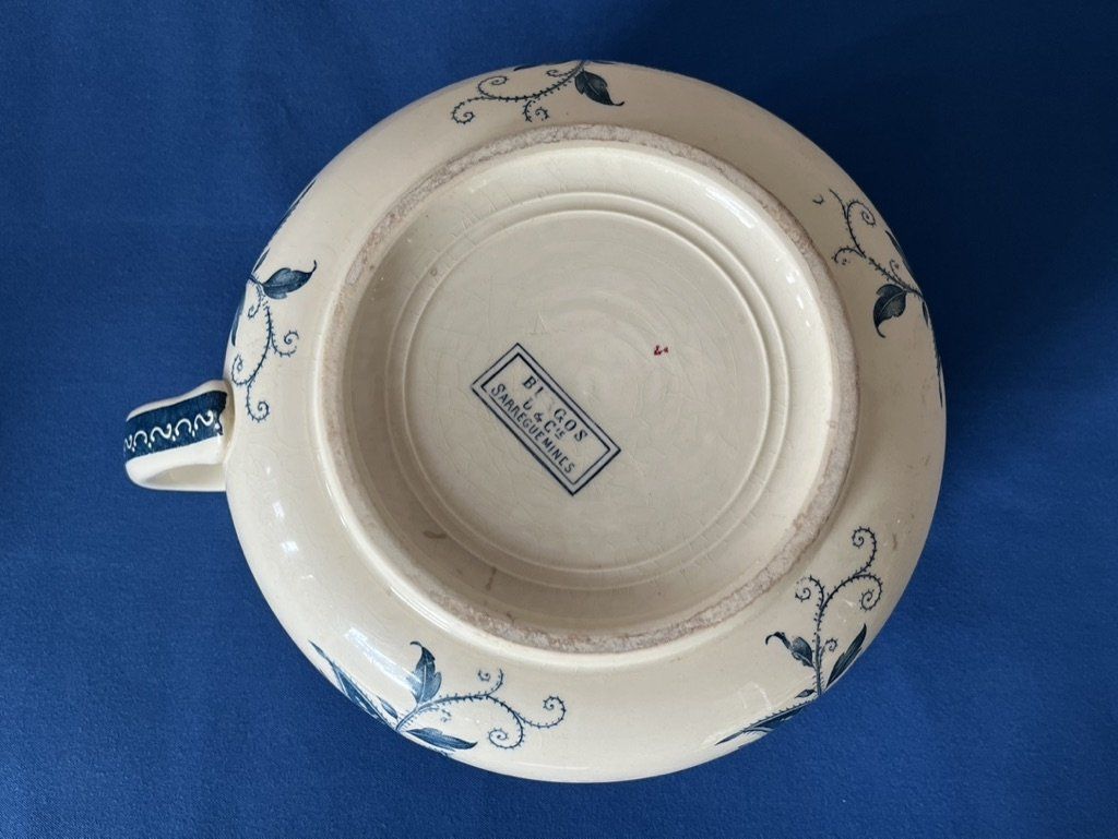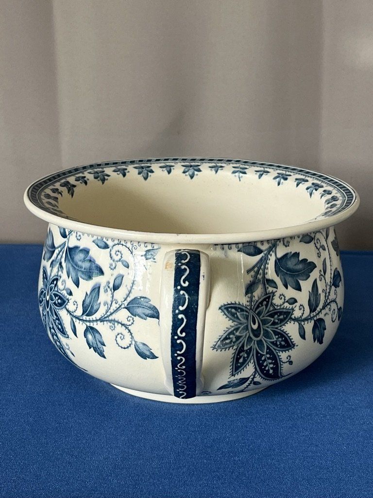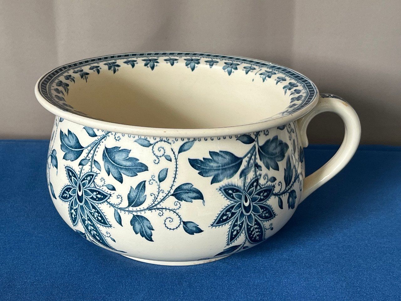 Ancien pot de chambre en faïence de Sarreguemines, modèle Burgos.
