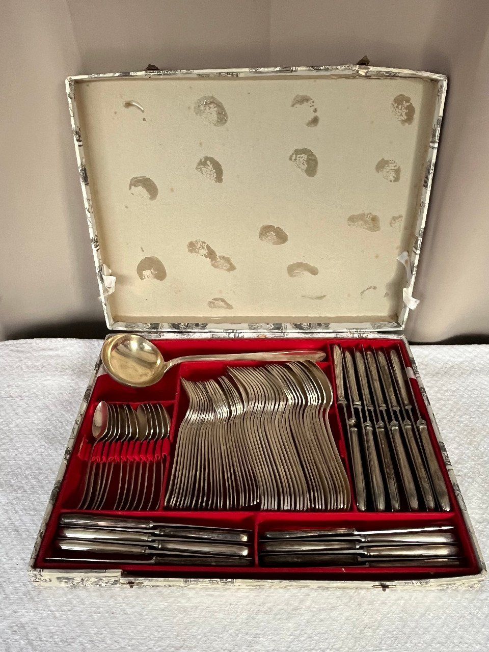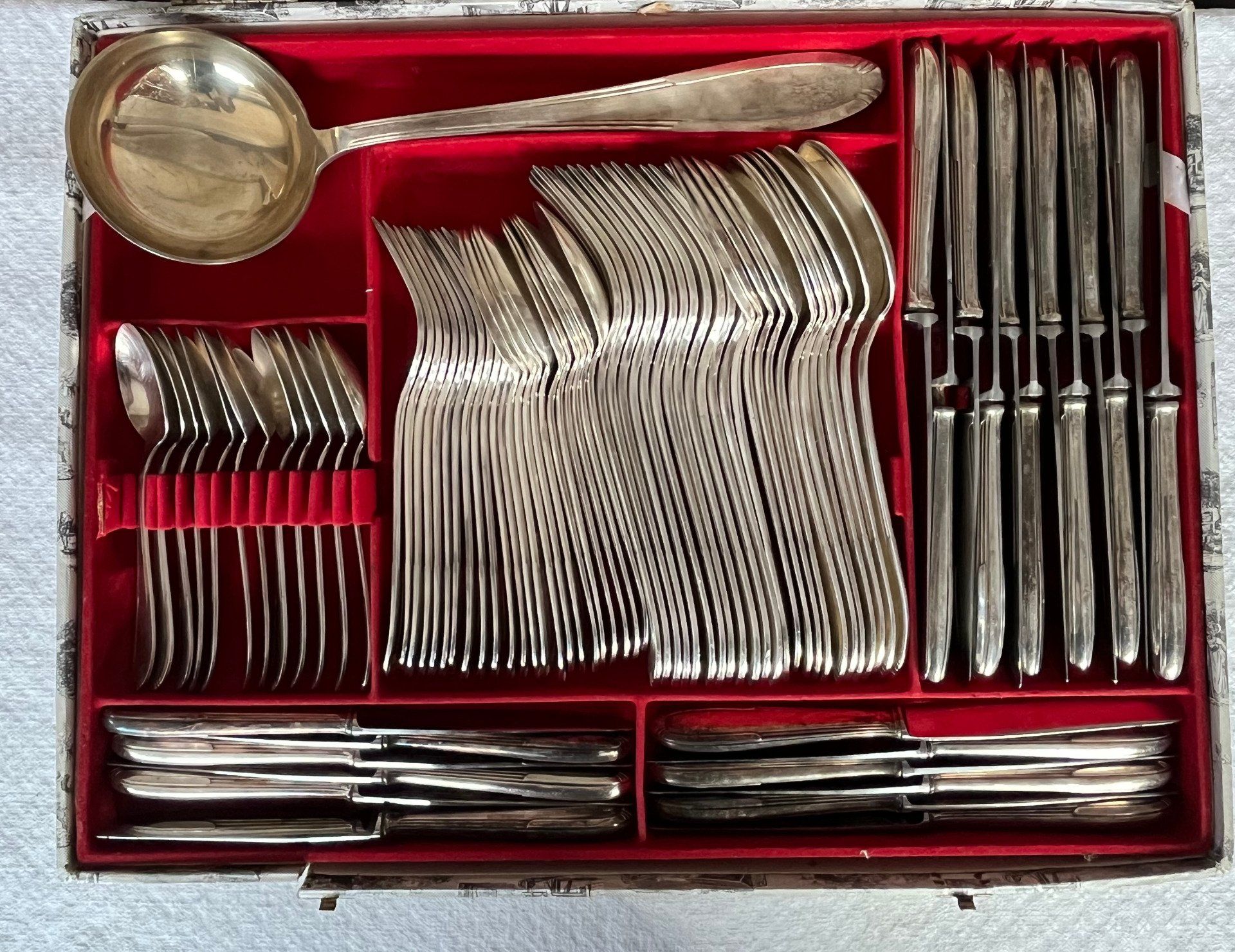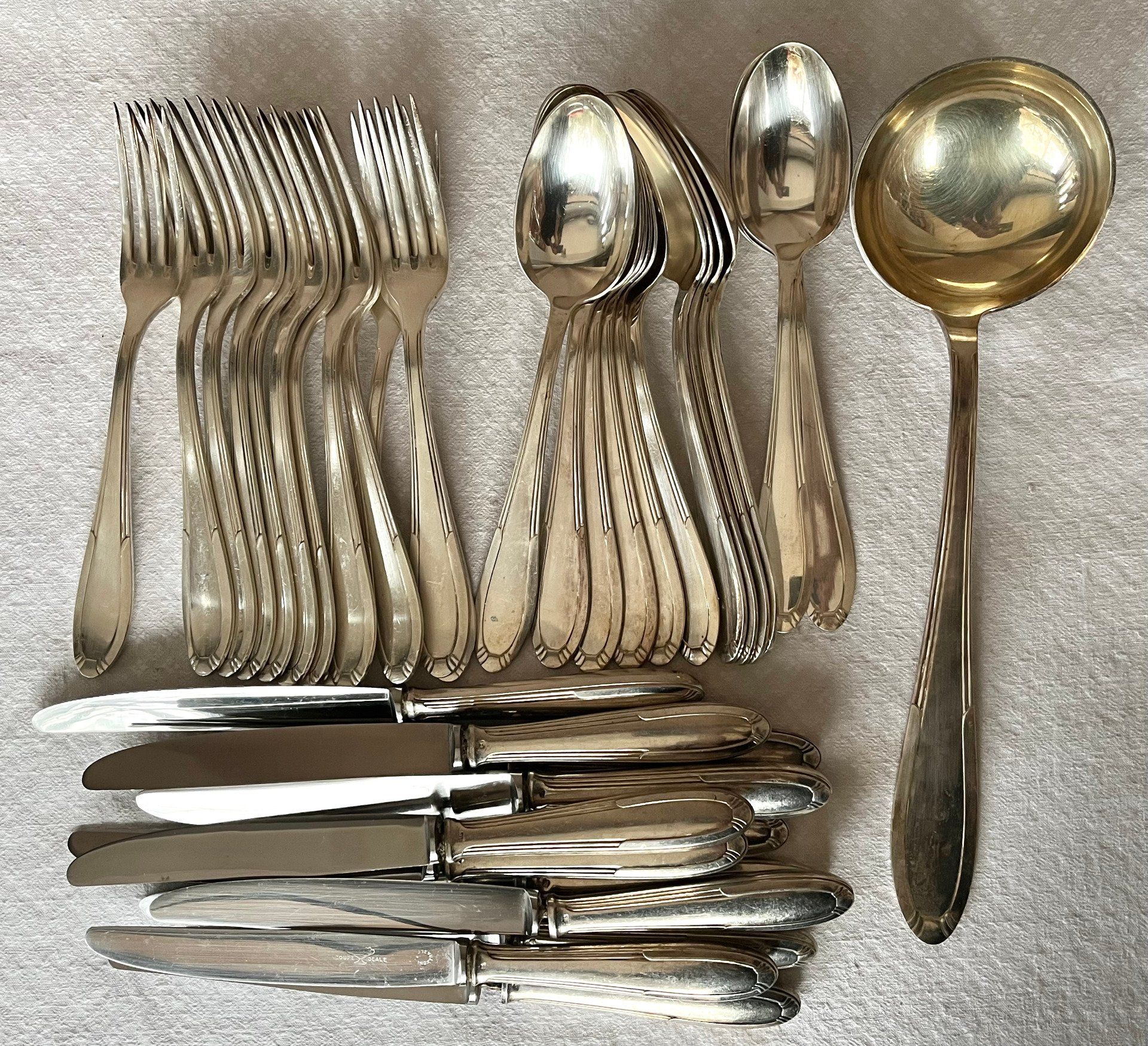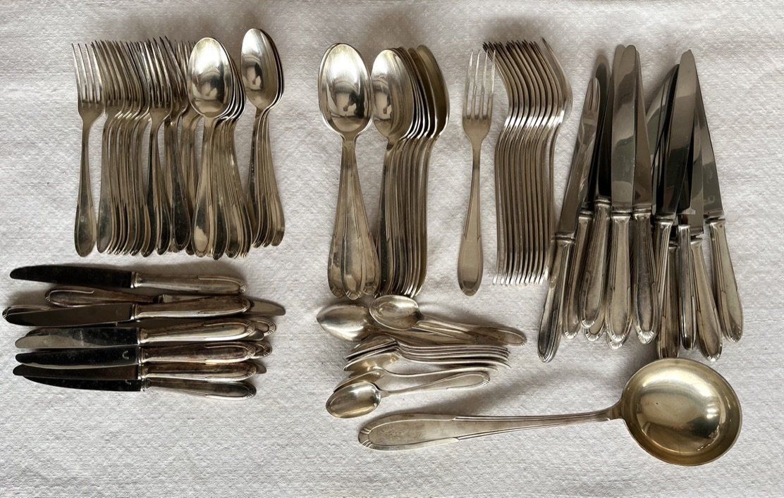 Très ancienne ménagère sortant du placard ... Comprenant 84 pièces pour un poids total de 5 kg 480.