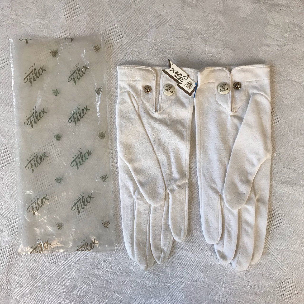 Gants blancs anciens très élégants, à bouton pression de marque Filex. Cette paire de gants en coton est idéal pour un mariage, différentes cérémonies ou déguisement. Gants neufs de belle qualité encore avec l'étiquette et sa petite poche.