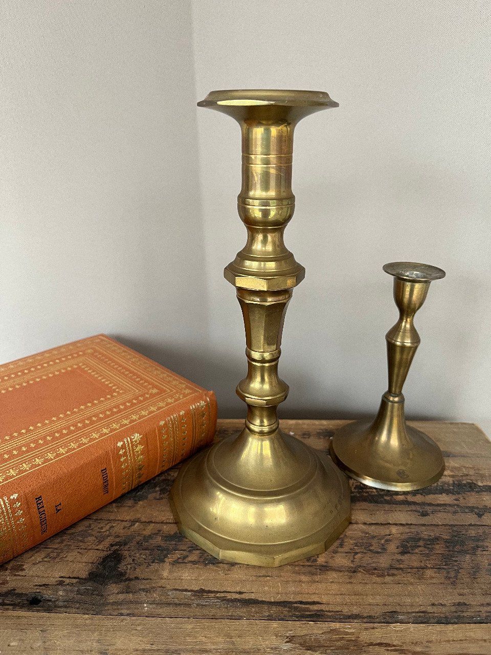 Duo de petits bougeoirs en laiton