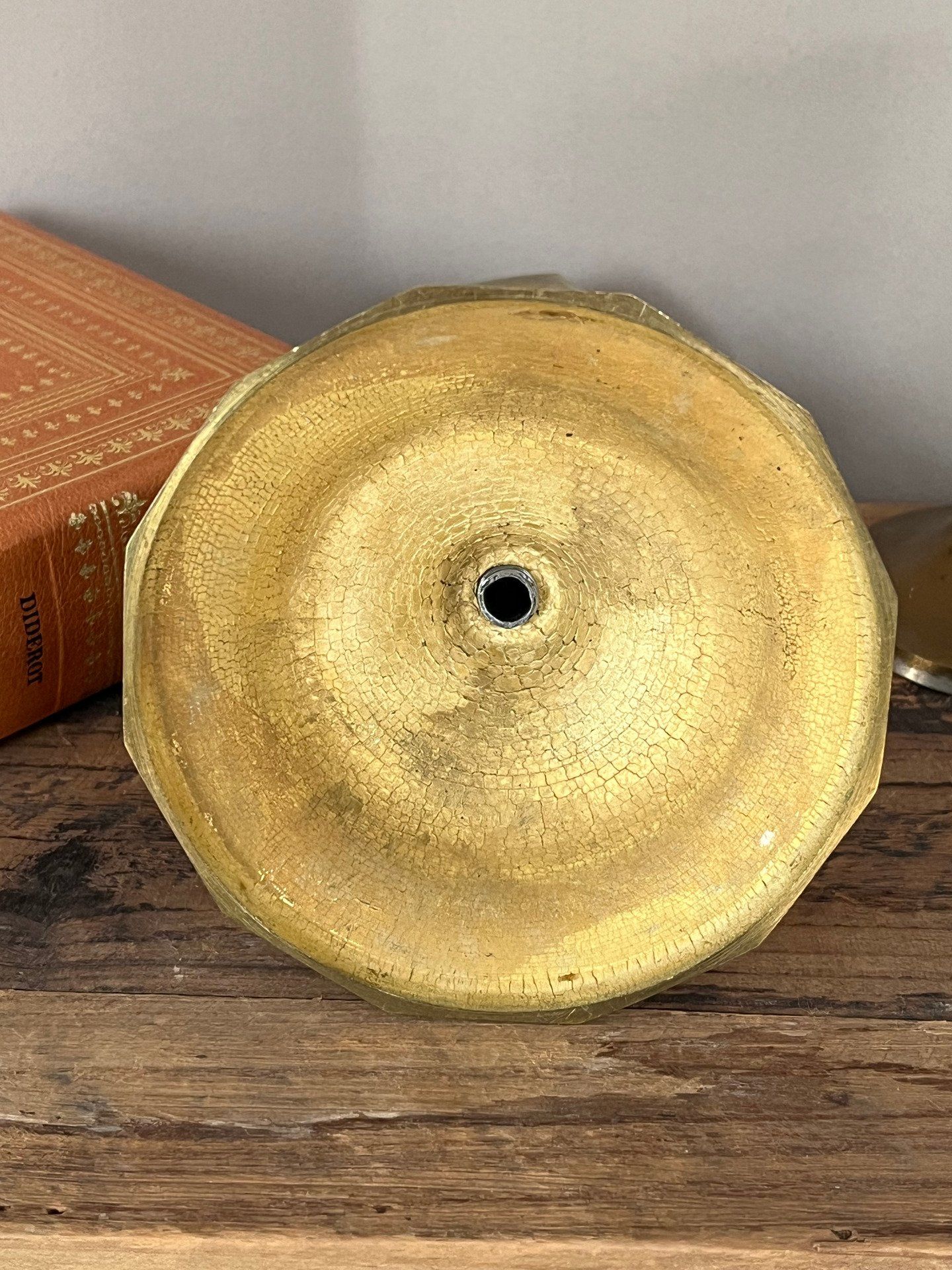Bougeoir ancien en laiton massif à la patine dorée