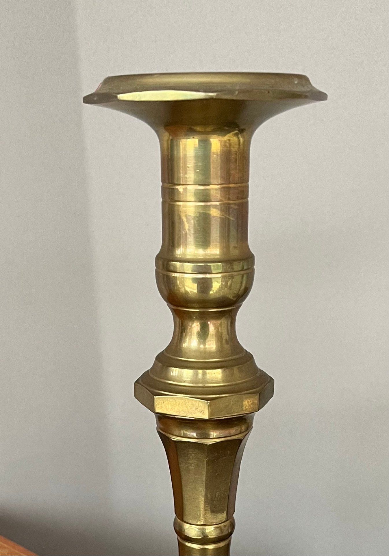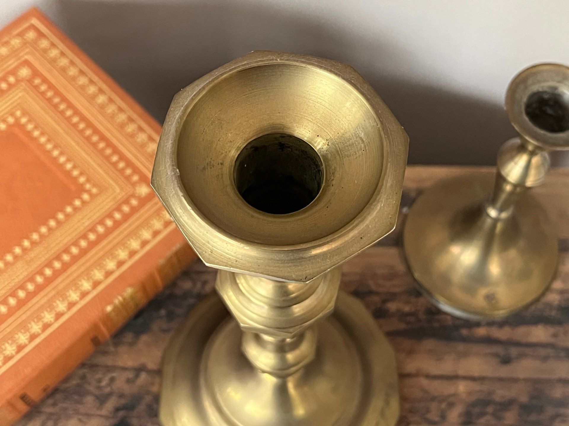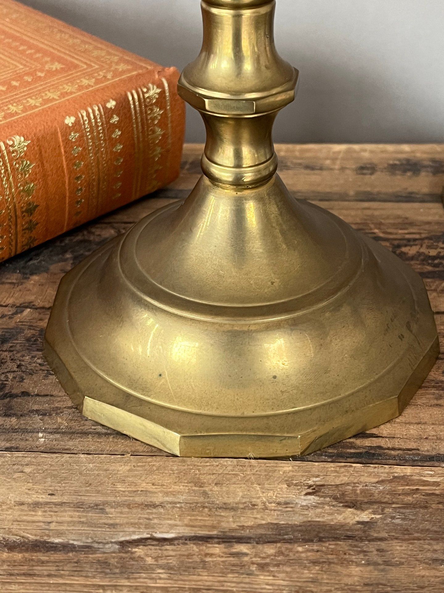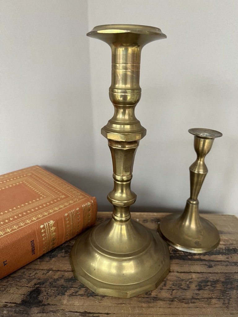 Magnifique bougeoir ancien en laiton à la patine chaleureuse et au design classique. Cette pièce élégante en excellent état est idéale pour sublimer une ambiance tamisée ou compléter une collection d'objets authentiques. Voir description