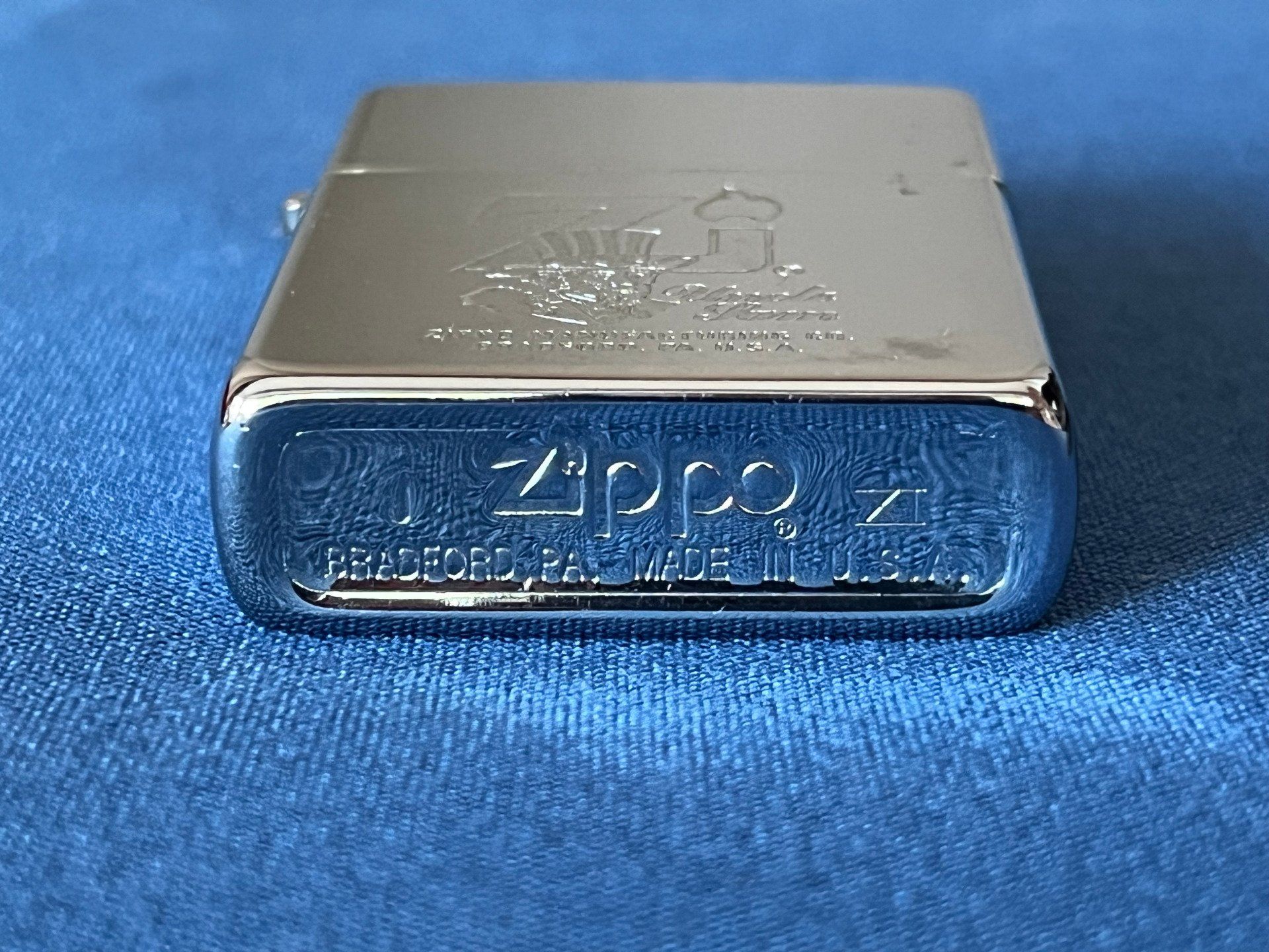 La base du boîtier porte les inscriptions réglementaires Zippo, Bradford, PA. Made in USA ainsi que le code J - XI certifiant une production en octobre 1995.