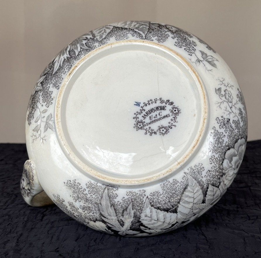 Broc de toilette ancien Sarreguemines - Modèle "Jardinière" - Décor gris/noir, fin du XIXe siècle.