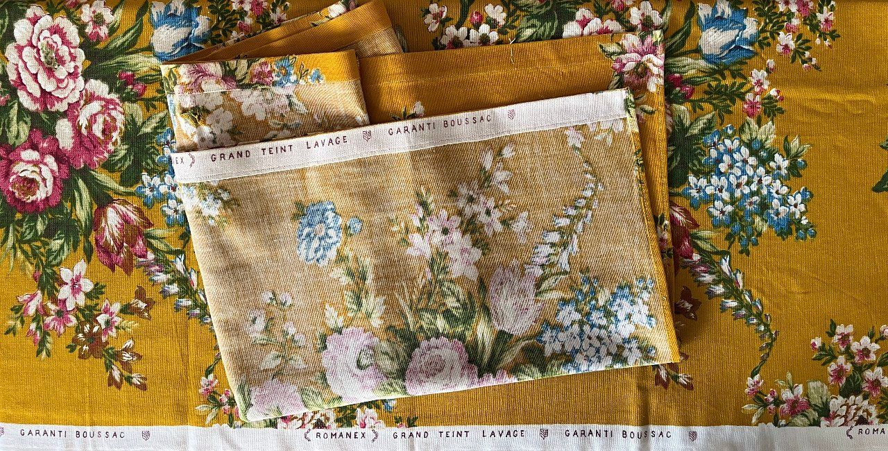 Coupons de tissu vintage "Rebecca" – Laurent Stève pour Boussac, années 1960 – Motif floral rare