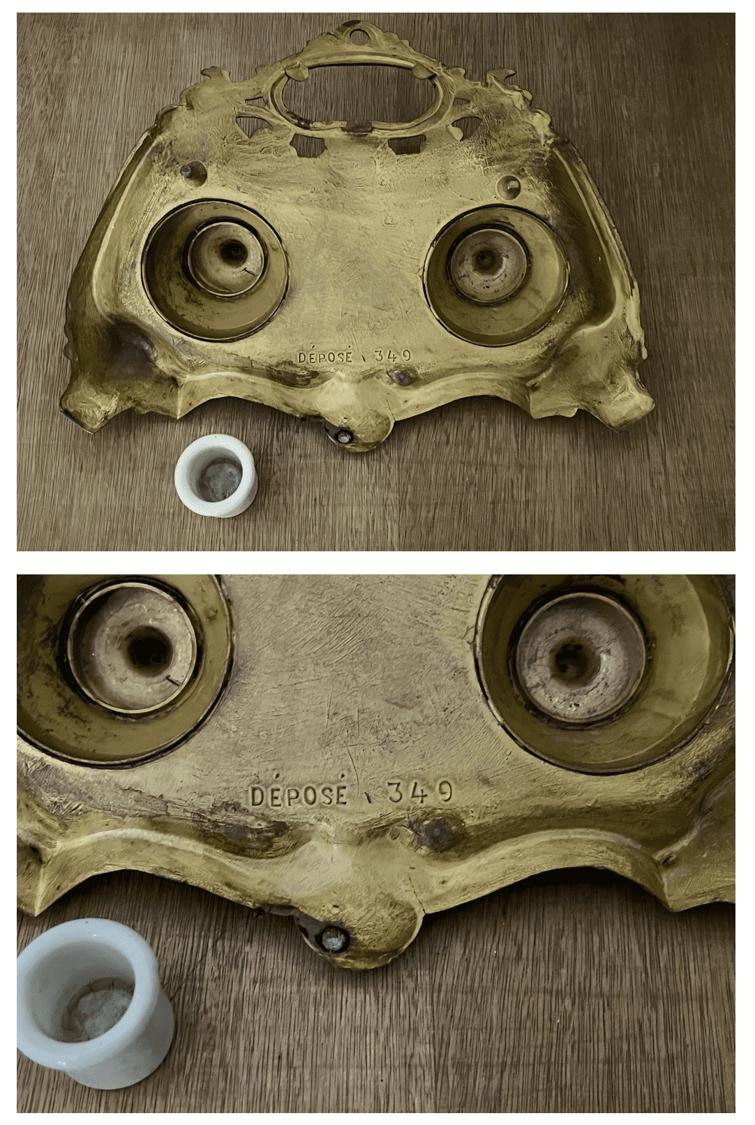 Sous la base se trouve l inscription Déposé 349 témoignant de sa fabrication de qualité.