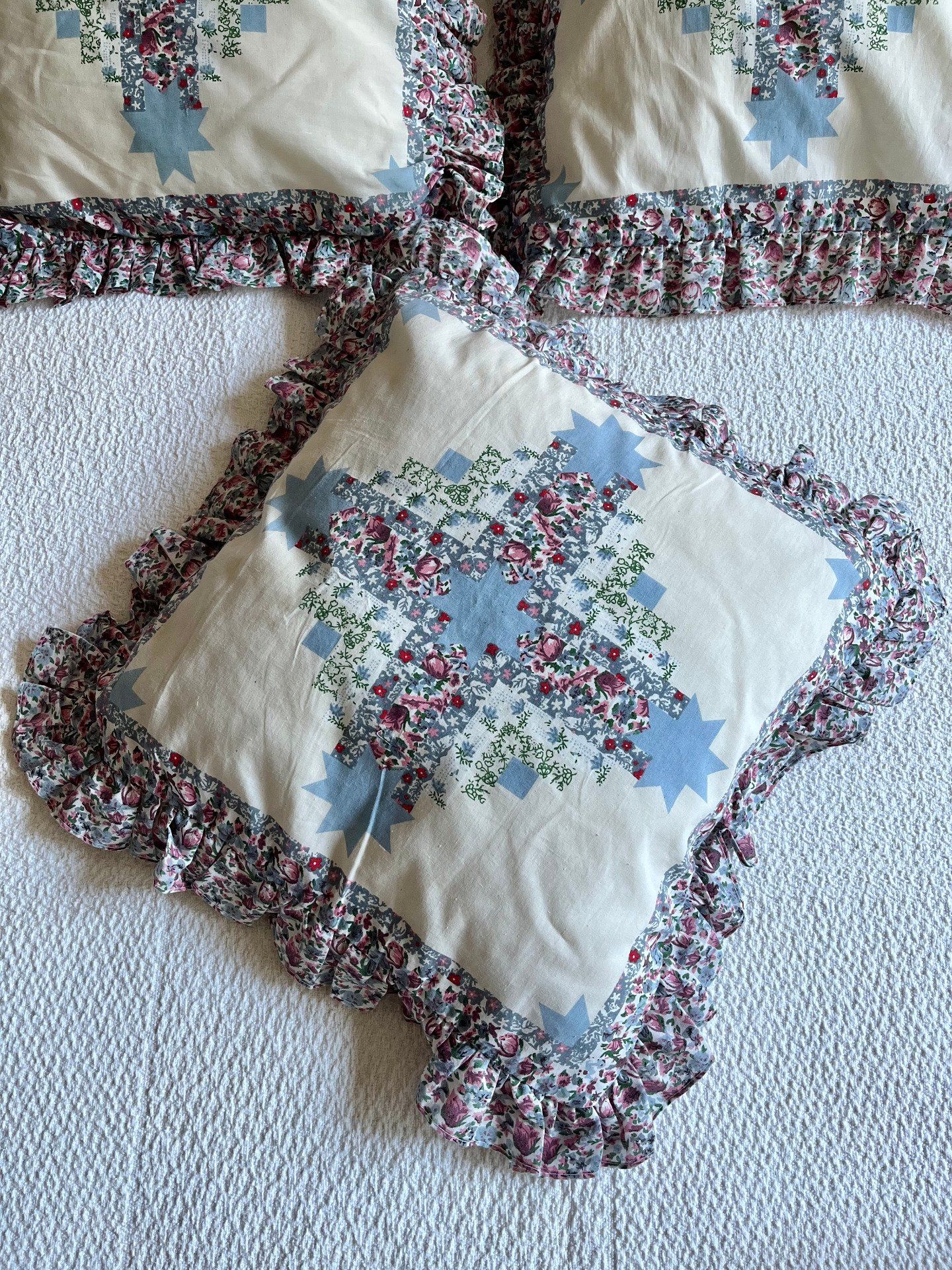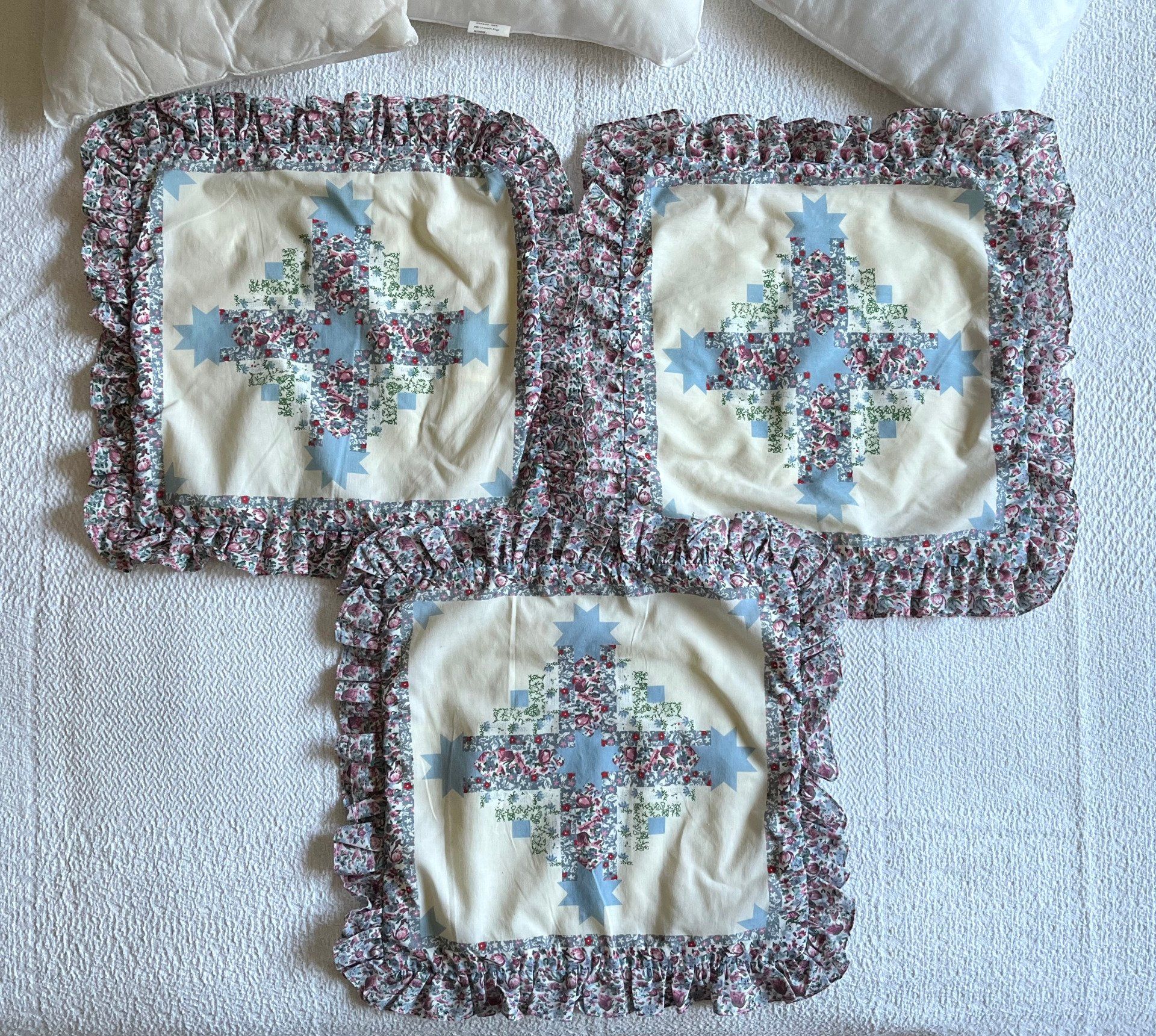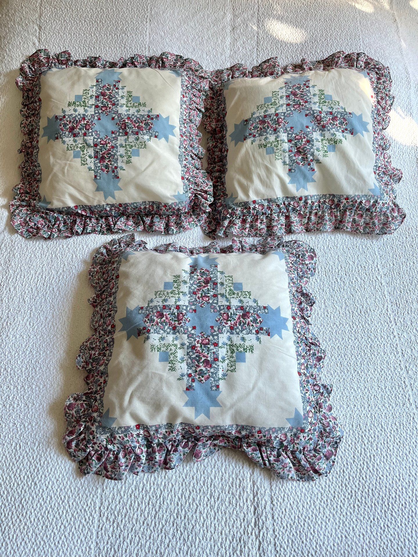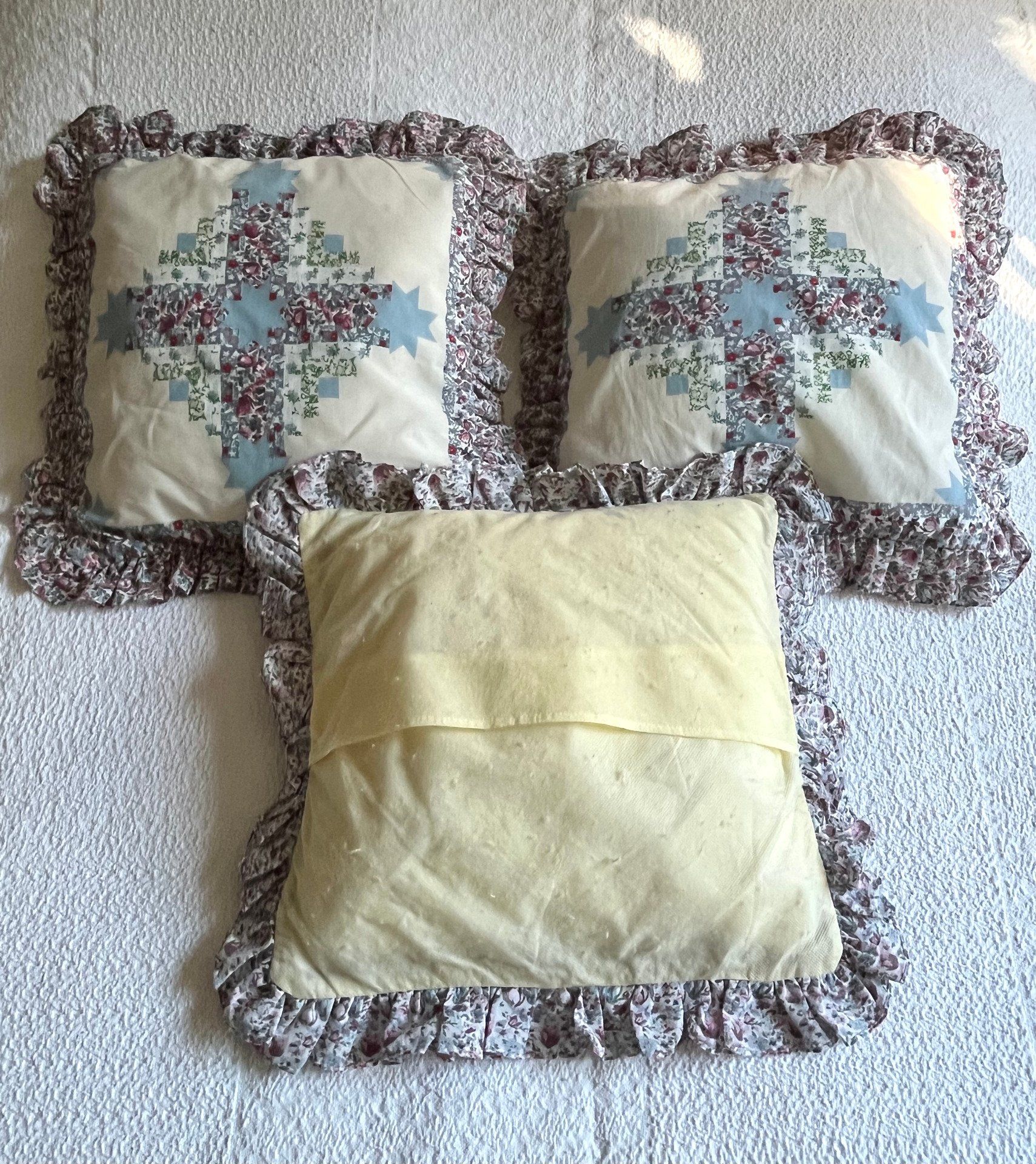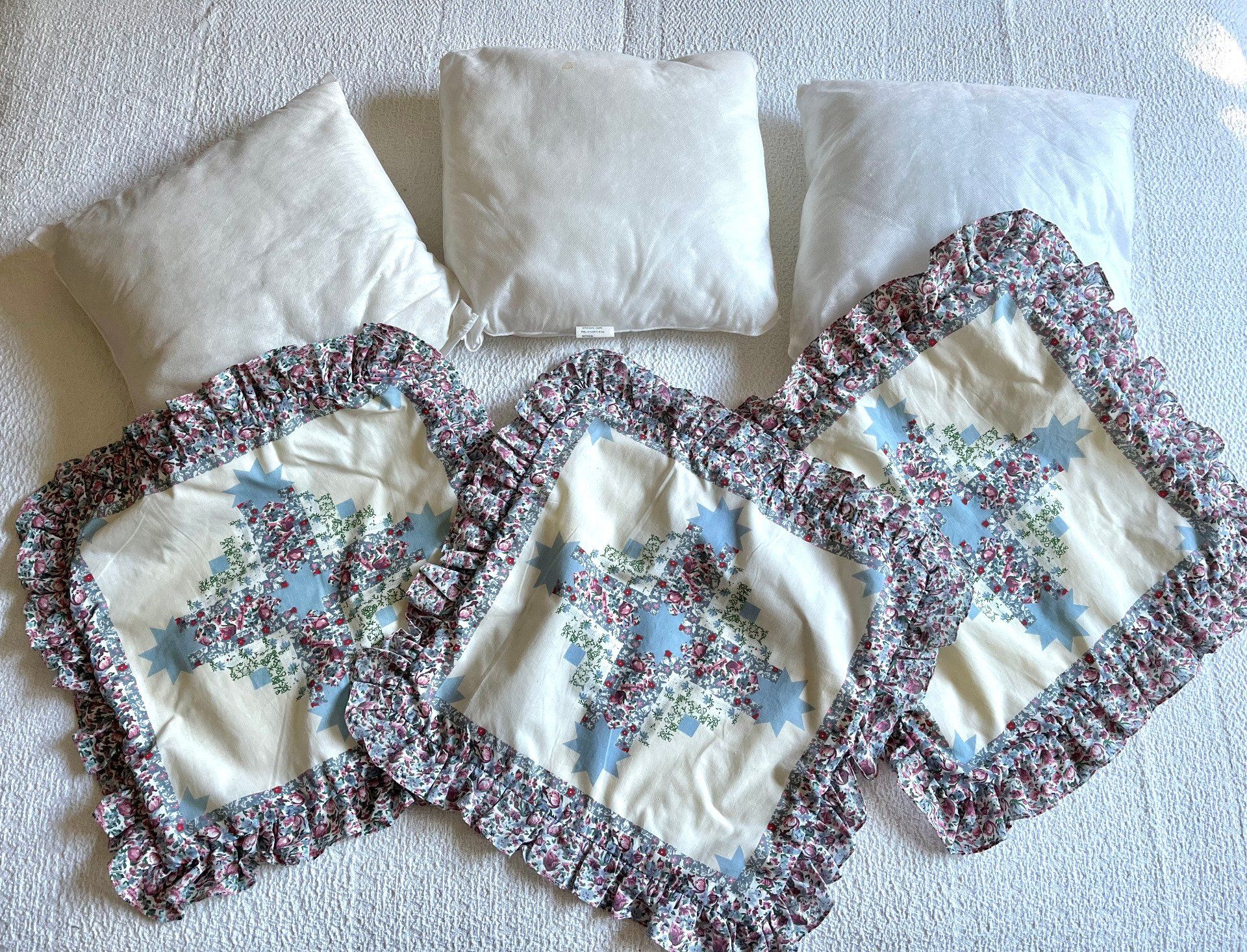 Ensemble vintage de 3 coussins et housses de coussin, parfaits pour ajouter une touche de douceur, de charme Shabby Chic ou Campagne Romantique à votre intérieur. Ces pièces sont idéales pour décorer un lit, un fauteuil ou un canapé. Voir descriptif