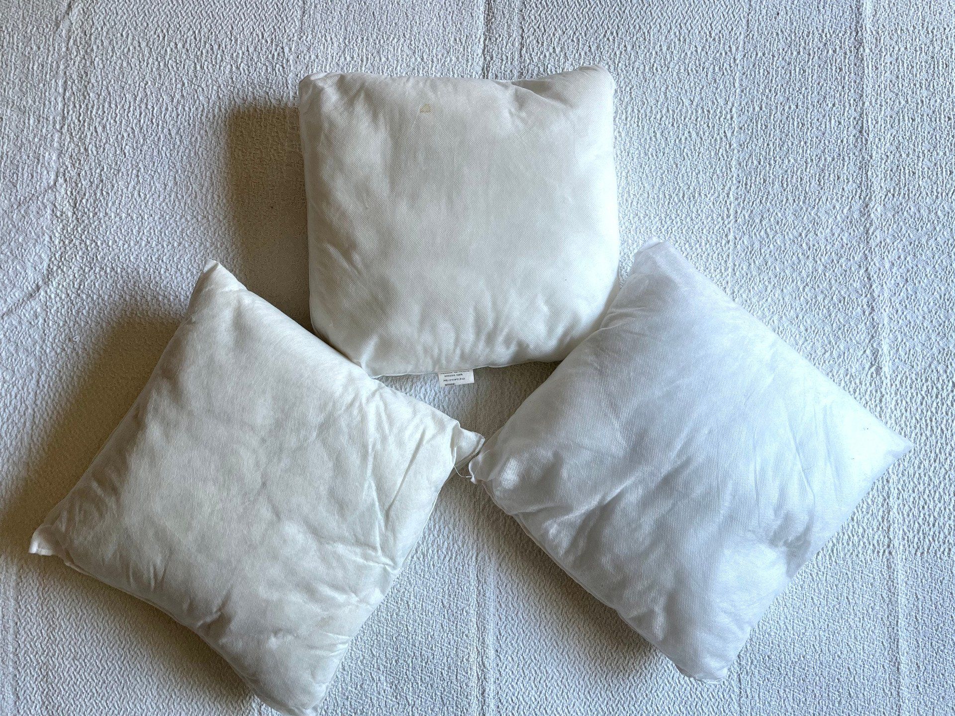 Les 3 coussins sont en bel état, 1 coussin à une petite tache. Fabriqué en France. Dessus 100% polypropylene, intérieur 100% polyester. Lavage à 40°.