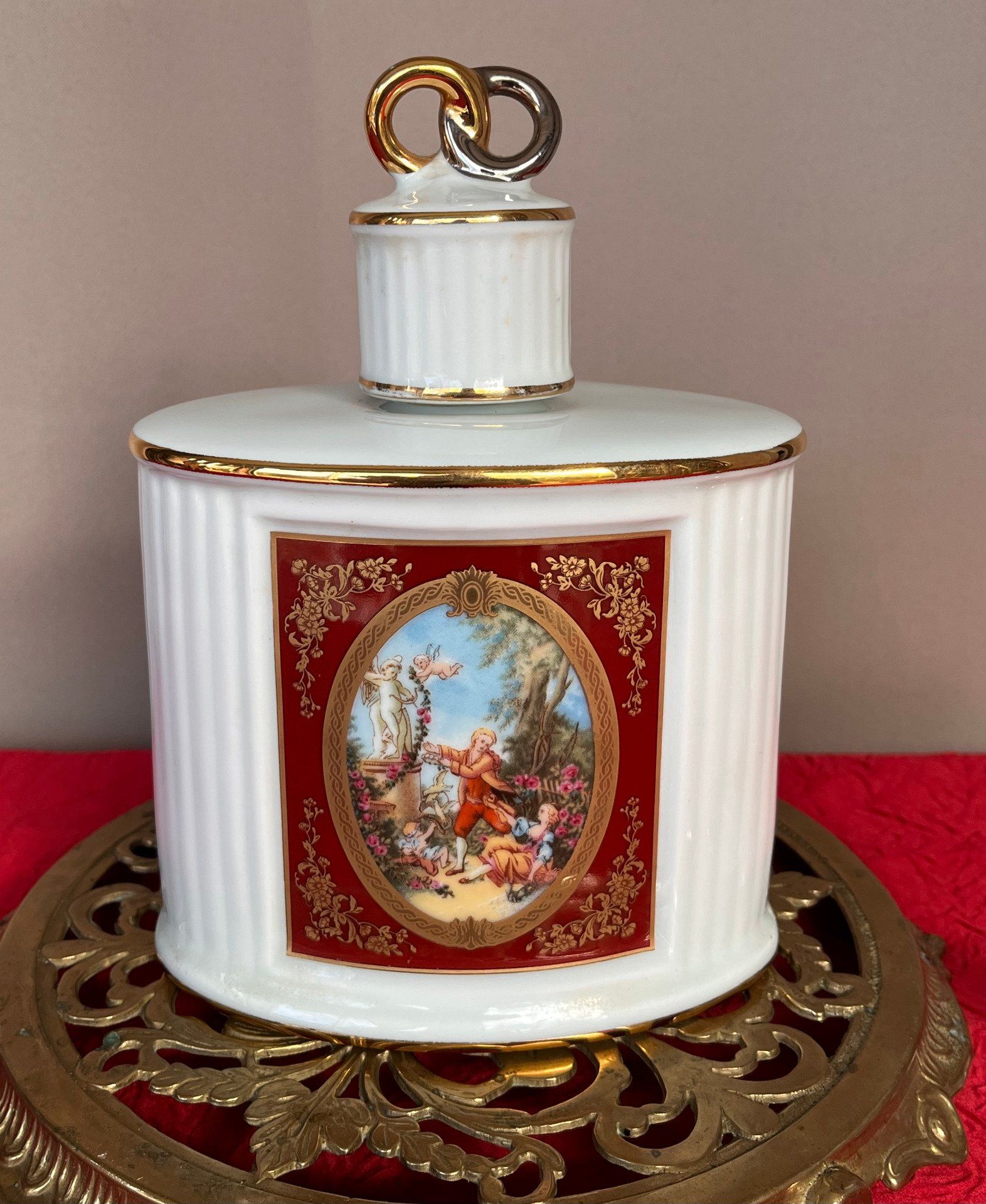 Flacon à Cognac en Porcelaine de Limoges - Décor Fragonard - Dorure à l'Or Fin.