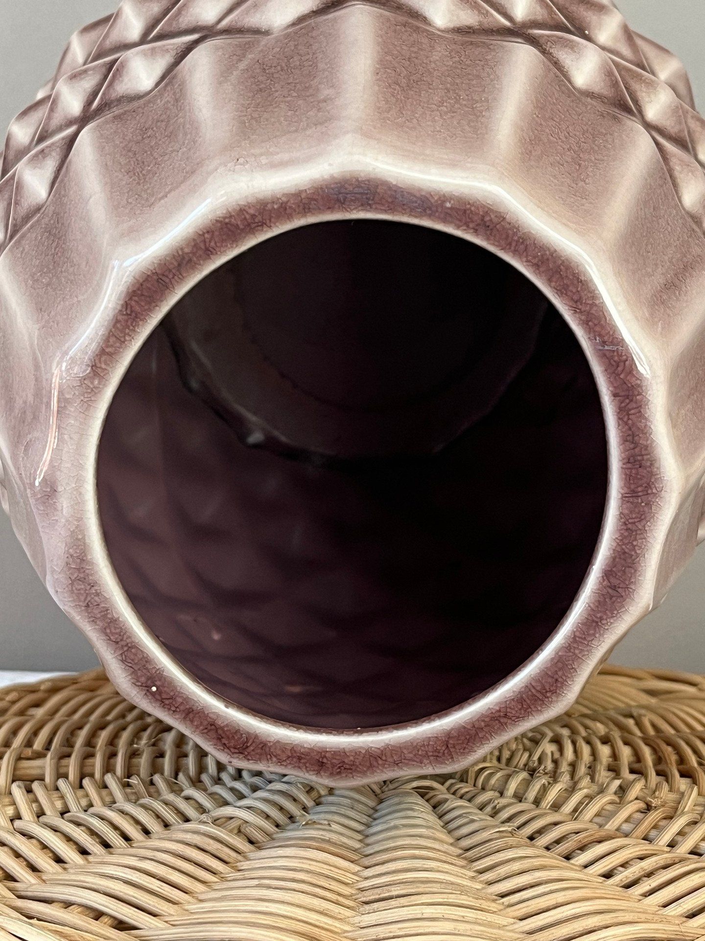 Joli vase en céramique texturé mauve / rose brun - Design Géométrique 'Ananas'