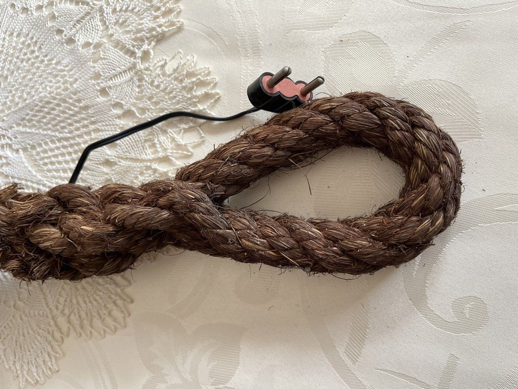 La boule est en excellent état, le cordage à un peu souffert, voir photos. Pour ce qui est de l'électricité, elle est vintage ! Comme vous pouvez voir sur les photos ça fonctionne mais il est peut-être nécessaire changer ces fils électriques ...