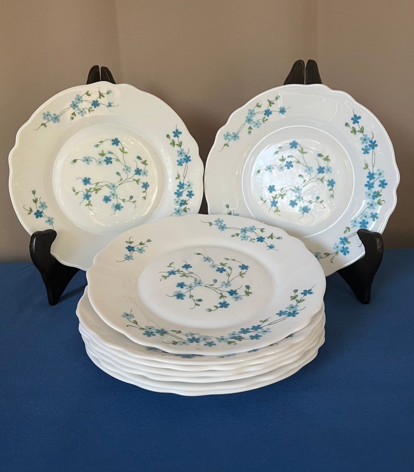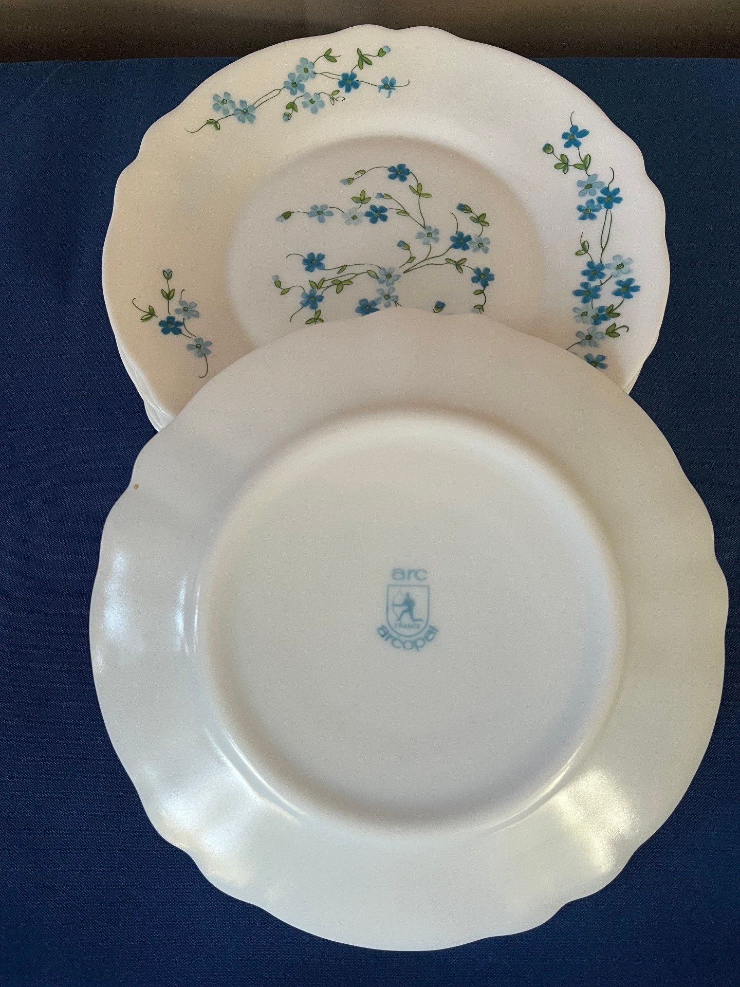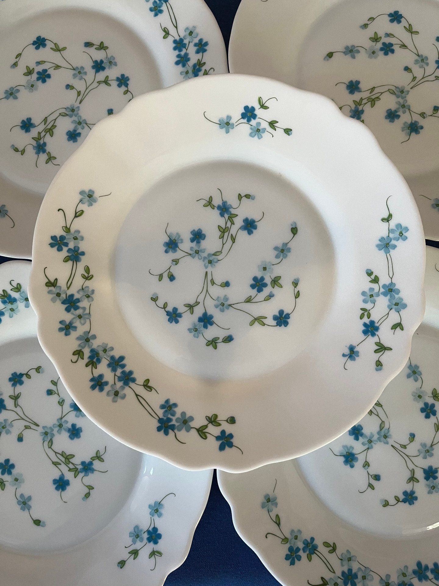 Lot de 9 petites assiettes ARCOPAL Modèle VÉRONICA (Myosotis) – Vintage années 70