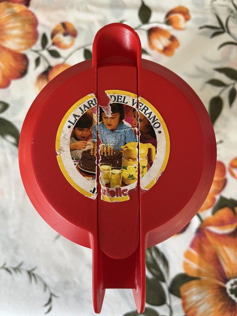 - Le pichet en verre au joli décor de tomates style Henkel, est neuf encore avec son étiquette sur le couvercle, noté dessus : "La Jarra del Verano". Incrusté dans le fond de la carafe la marque Bormioli Rocco. Hauteur totale 17,5 cm