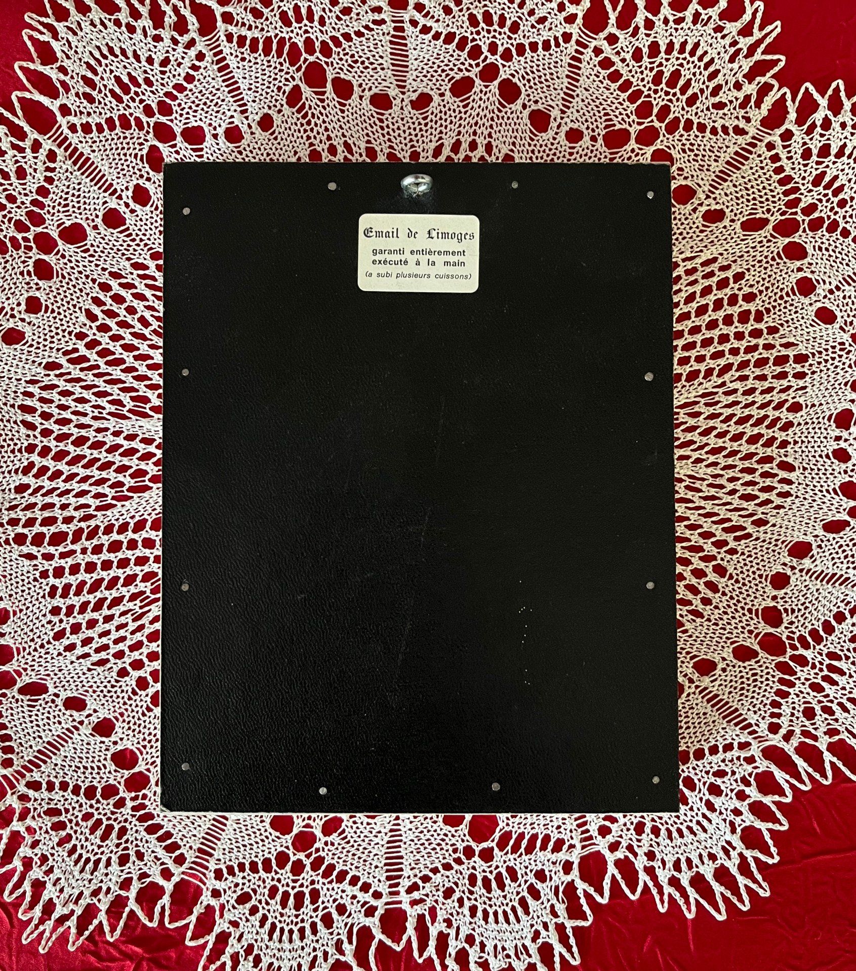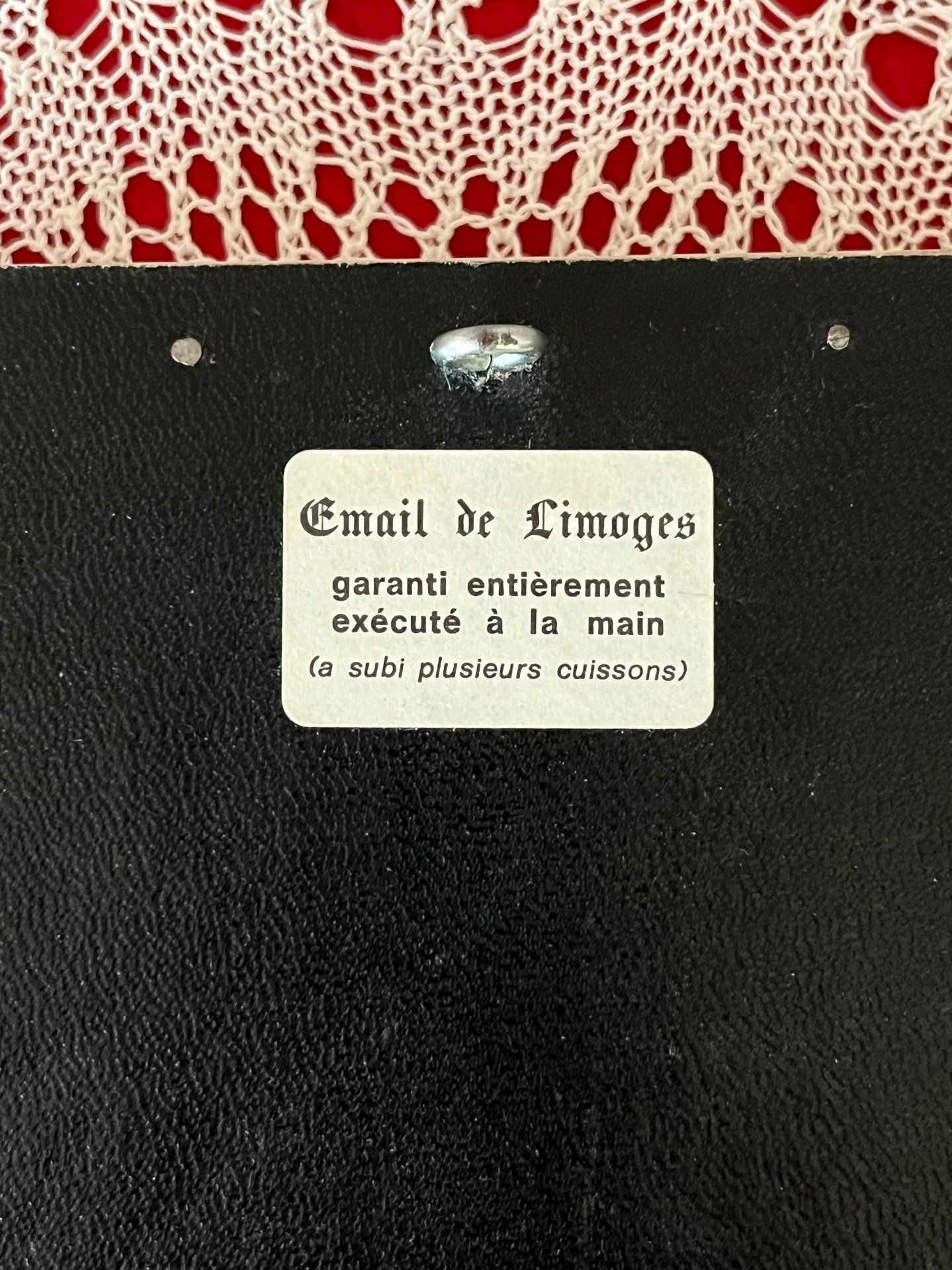 Noté à l'arrière du cadre : Émail de Limoges, garantie entièrement exécuté à la main (a subi plusieurs cuissons)