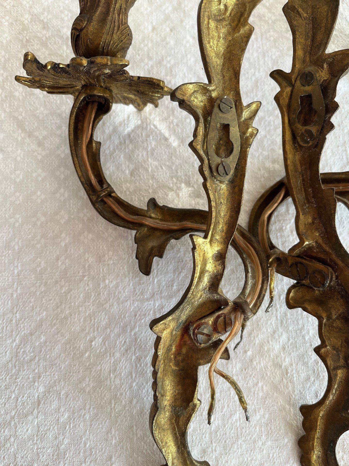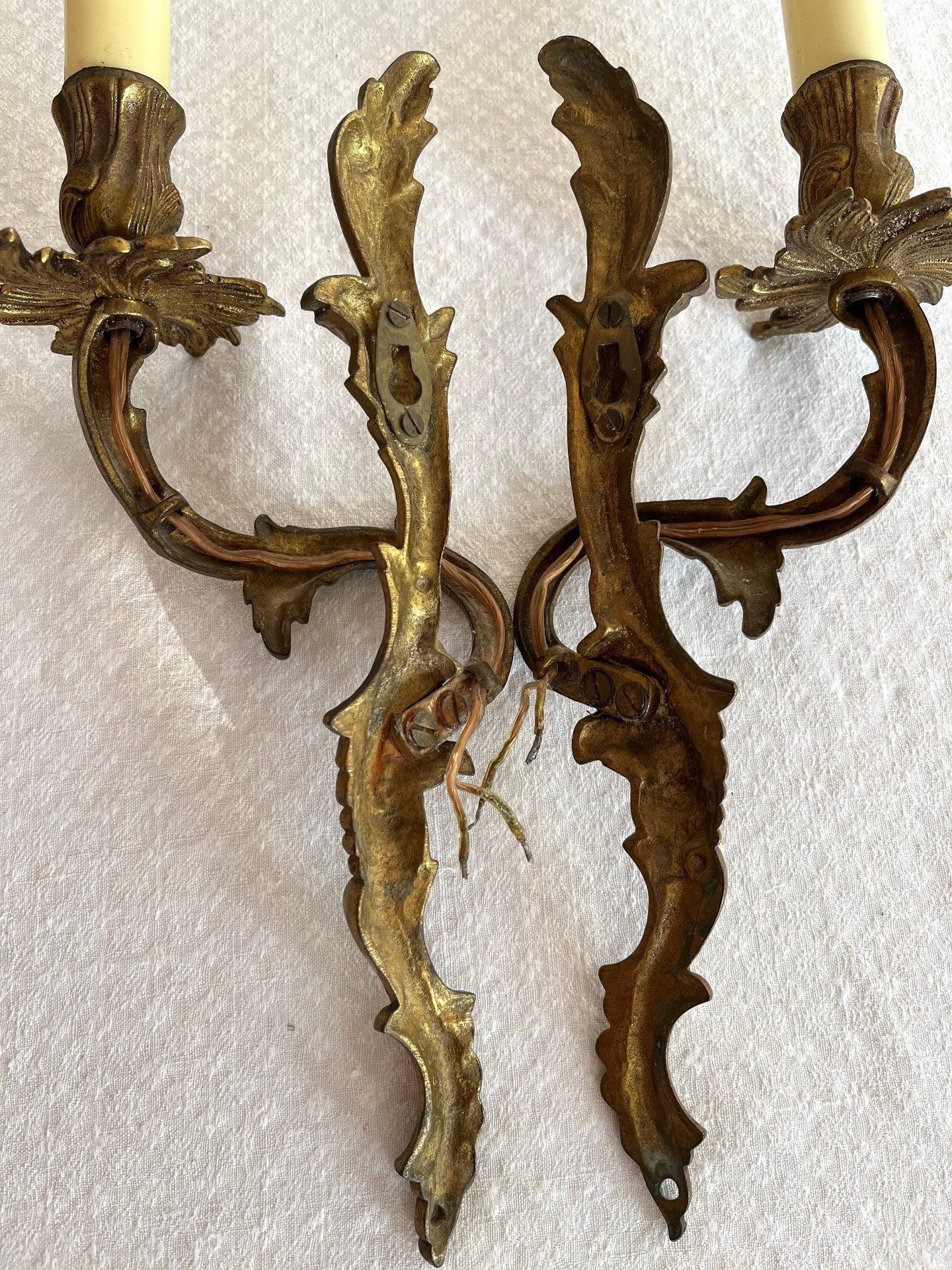 Ces luminaires ont des ornements typiques du style Louis XV ou Régence (Rocaille), avec des motifs de volutes, de feuilles d'acanthe et de courbes élégantes, pouvant s'intégrer dans une décoration shabby chic, romantique ou dans une déco moderne pour un intérieur unique, chaleureux et plein de caractère.
