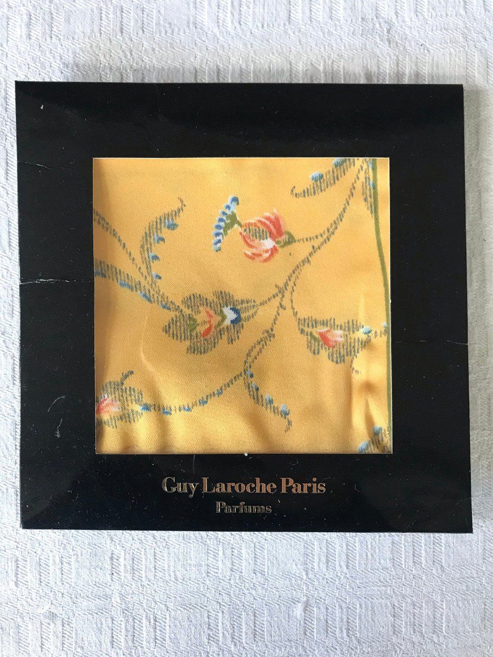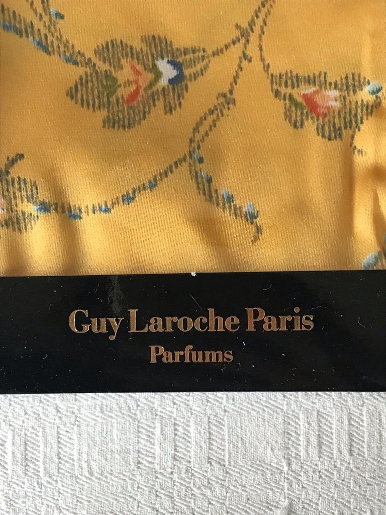 Petit carré de satin polyester, Guy Laroche, Paris, Du parfum FIDJI, Neuf