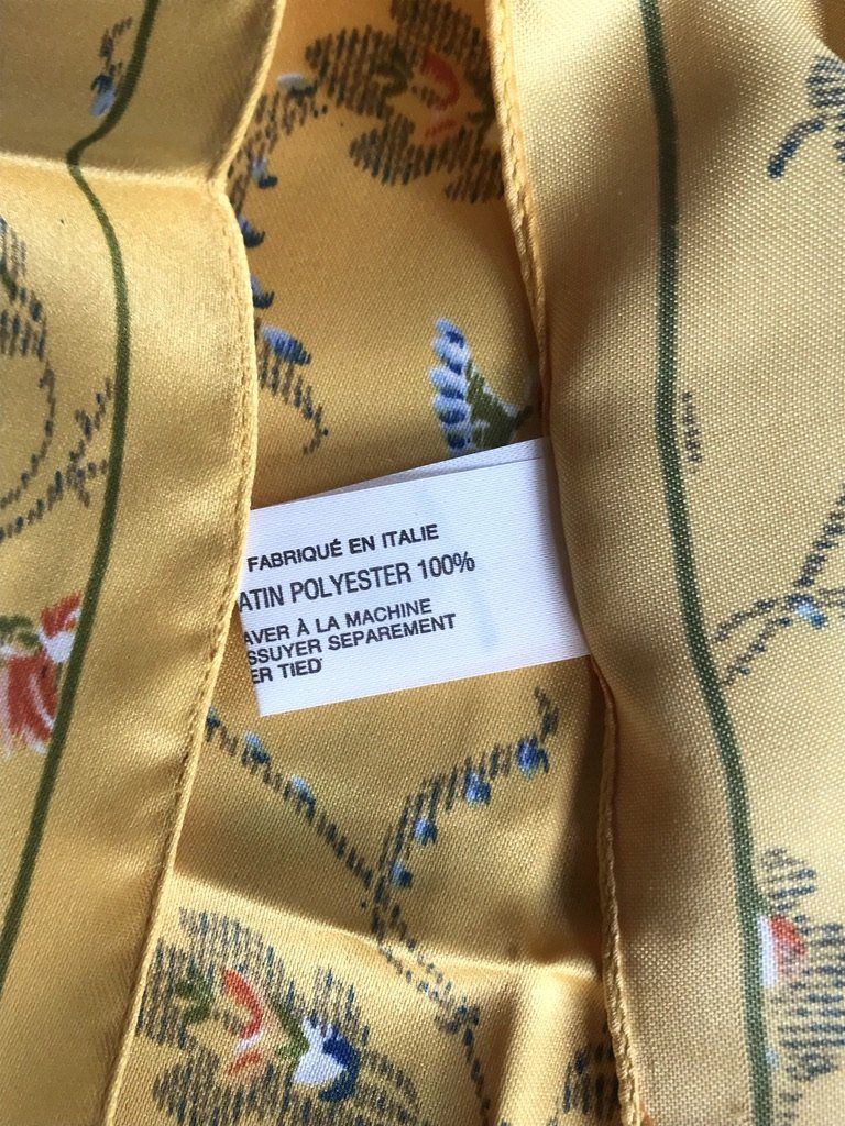 En satin polyester, fabriqué en Italie.