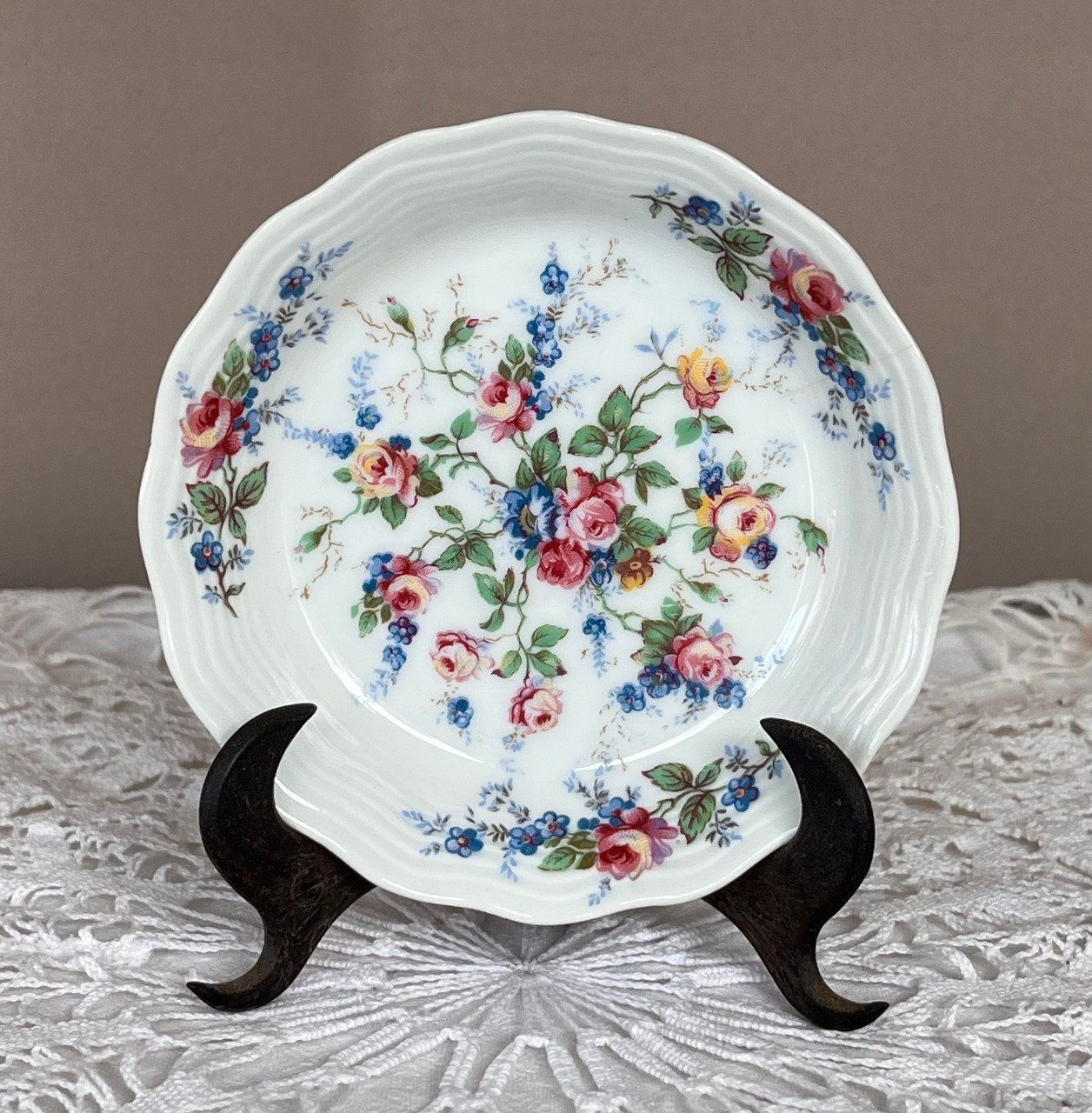 Petite Assiette fleurie, Décorative Limoges France et son Support