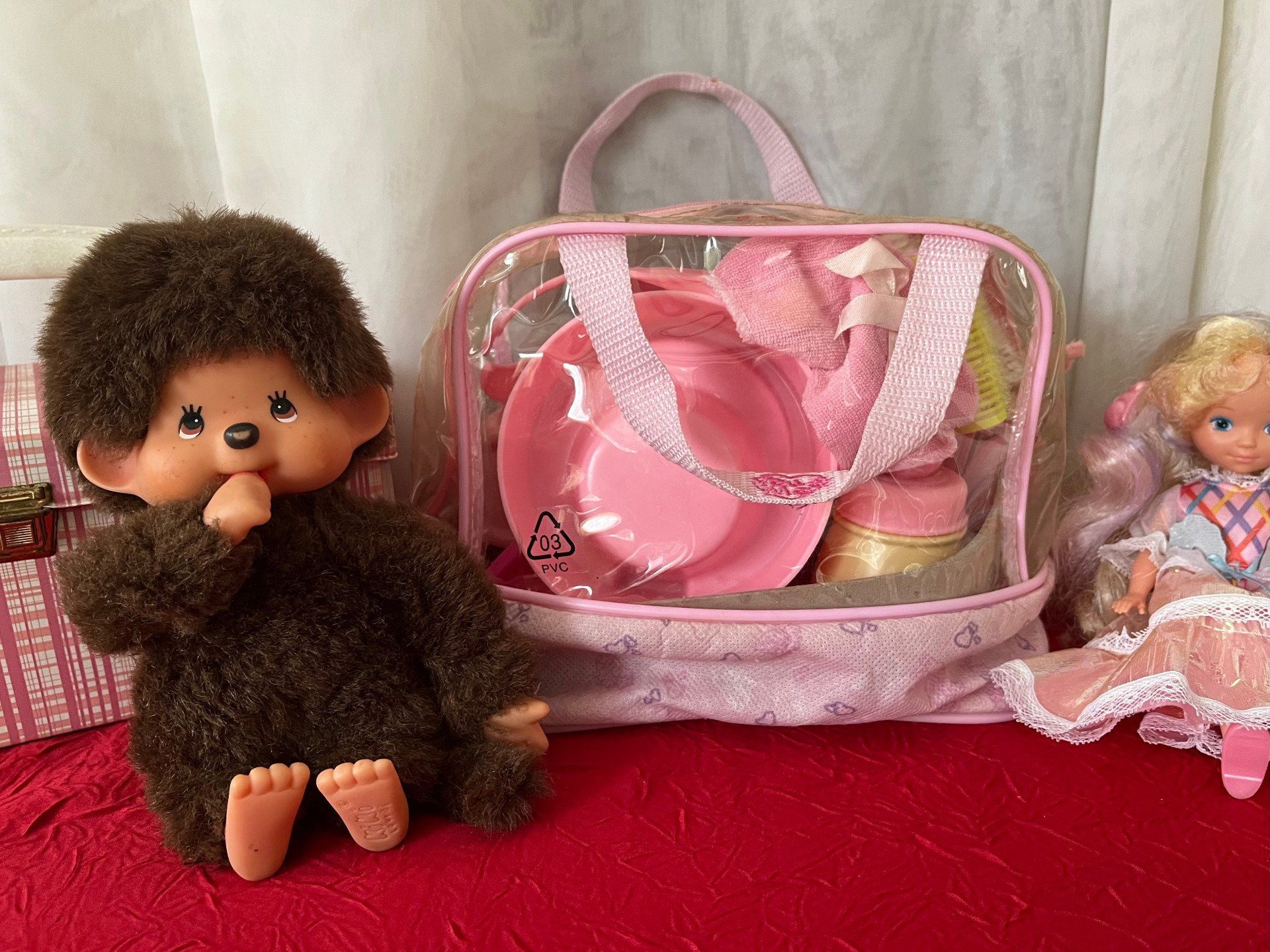 Cette charmante mallette pour enfant, vintage, est conçue pour permettre à l’enfant de prendre soin de sa poupée comme d’un vrai bébé avec différents produits de soin, poudriers, brosses, etc. Jouet typique des années 60/70. Voir descriptif