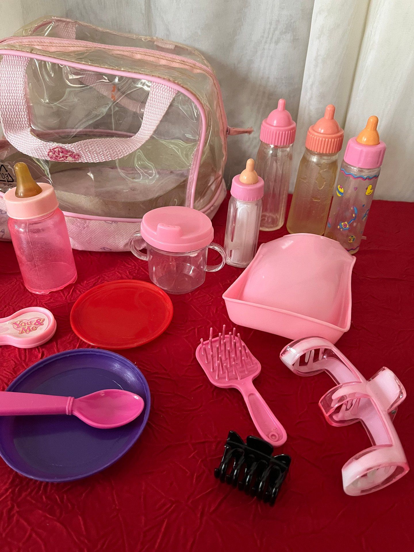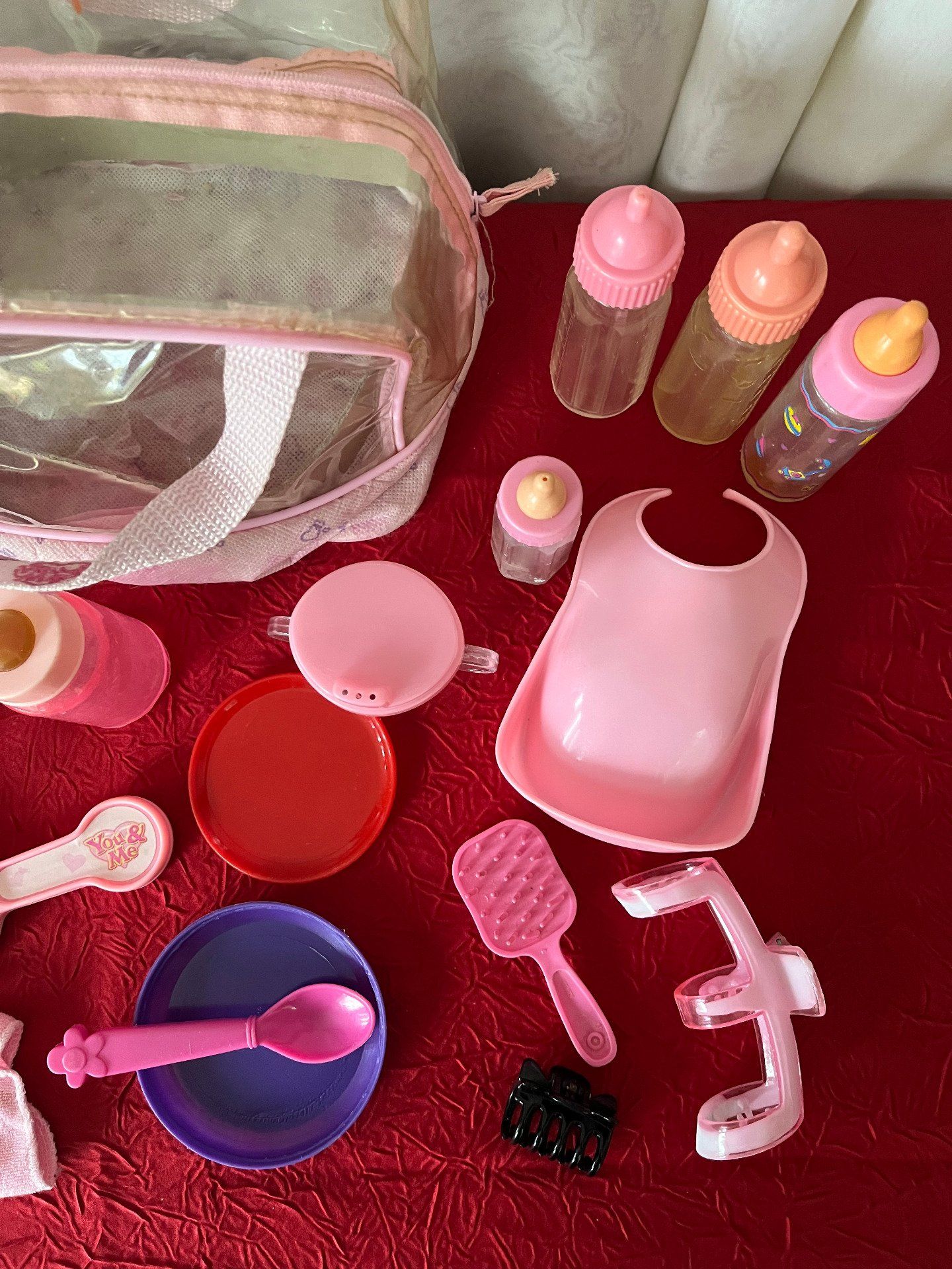 Cette charmante pochette de soins et d'accessoires pour poupée, de la marque "You & Me". Ce kit complet est le jouet idéal pour stimuler l'imagination et "jouer à la maman ou au papa".