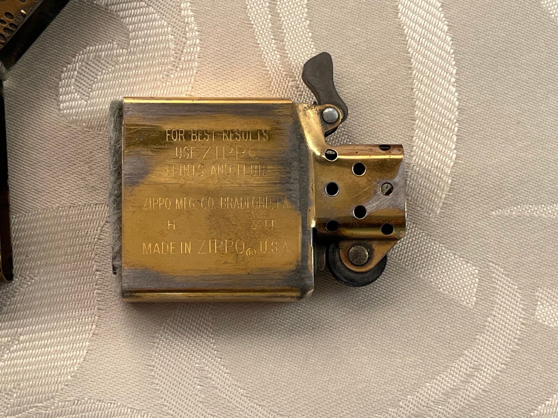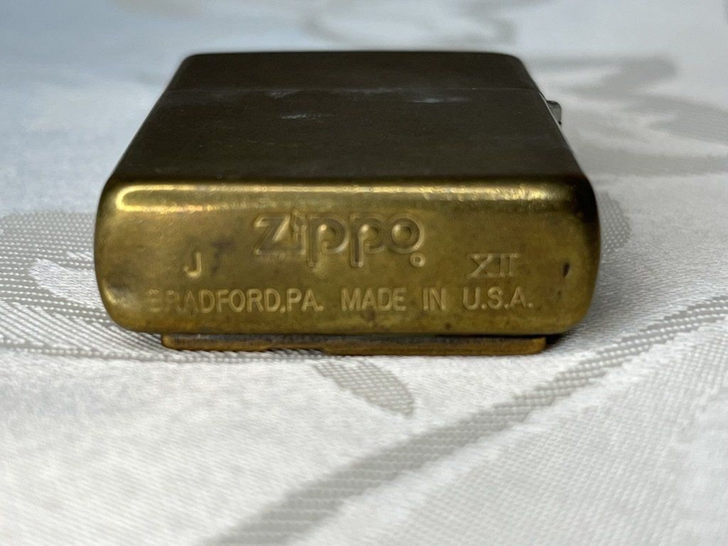 Sous le boîtier comporte les gravures Zippo, Bradford, PA. Made in USA et le code de datation J - XII, certifiant une sortie d'usine en octobre 1996. L'insert intérieur est également marqué et correspond à la période de production.