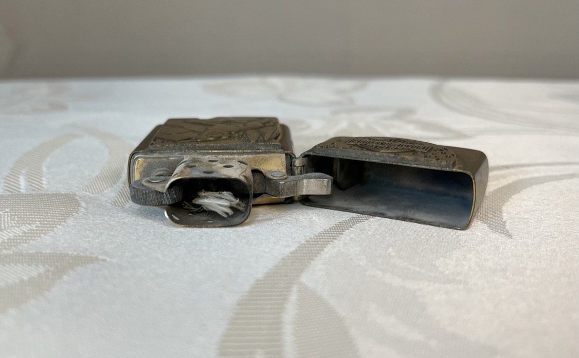Le briquet présente une patine d'usage qui souligne son caractère vintage.