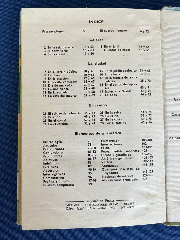 Rare, manuel d'espagnol "Pepe y Pepita" de 1964. Un ouvrage collector aux adorables illustrations couleurs typiques des années 60. Idéal pour les collectionneurs de livres anciens ou pour une décoration rétro pleine de charme. Voir description détaillée.