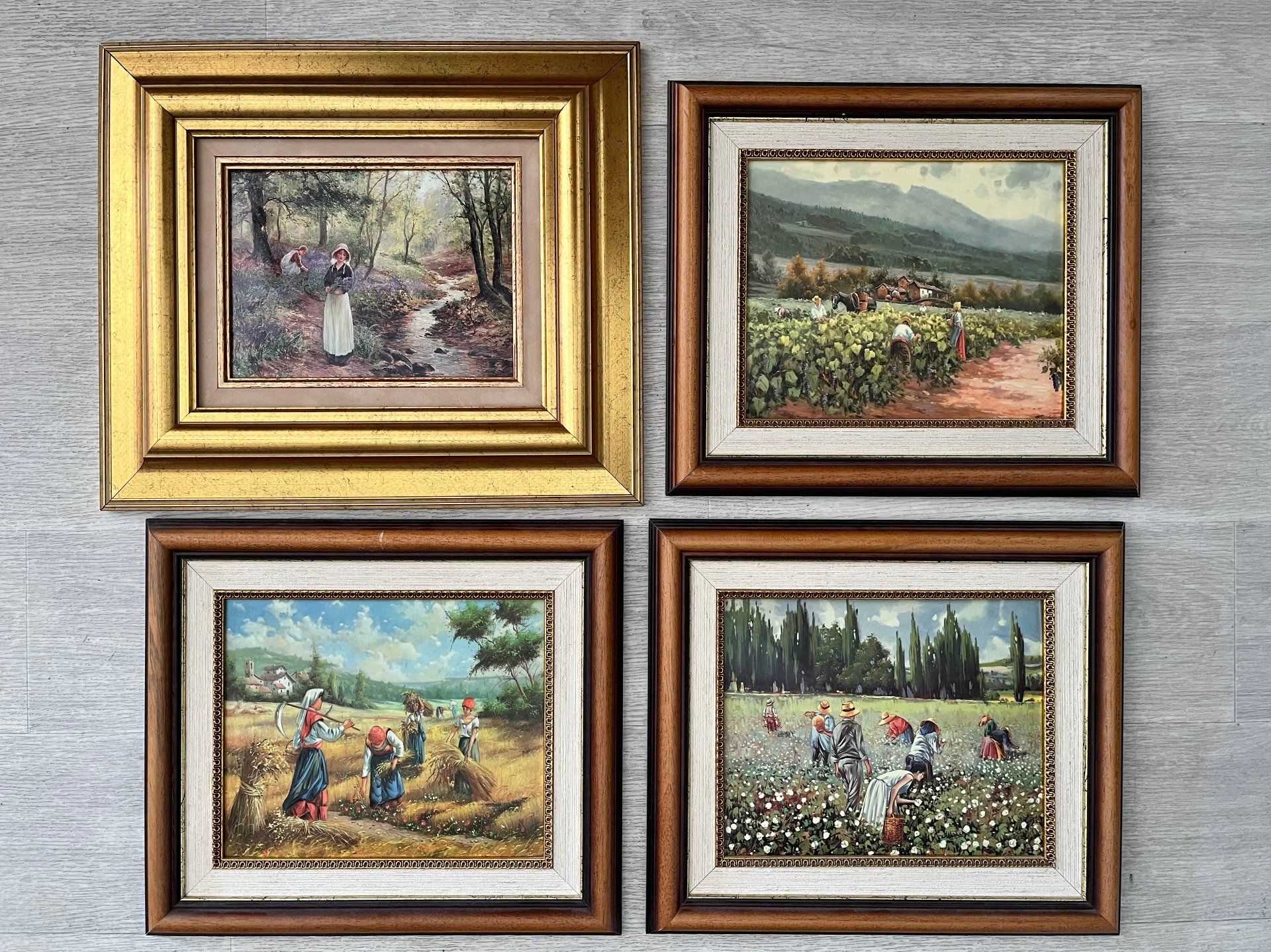 Tableau en Émaux d'Art "Les Vendanges" - Scène de Terroir Provençale - Cadre bois