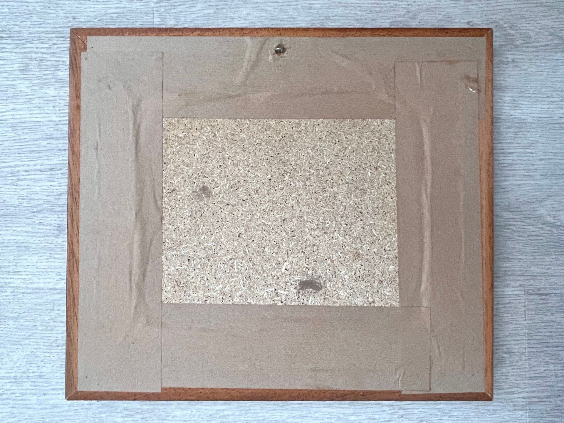 Le cadre bicolore, brun et crème, apporte une finition soignée et chaleureuse. Bien que non reconnue, cette oeuvre est d'une grande qualité d'exécution, parfaite pour les amateurs de décors champêtres et de traditions paysannes.