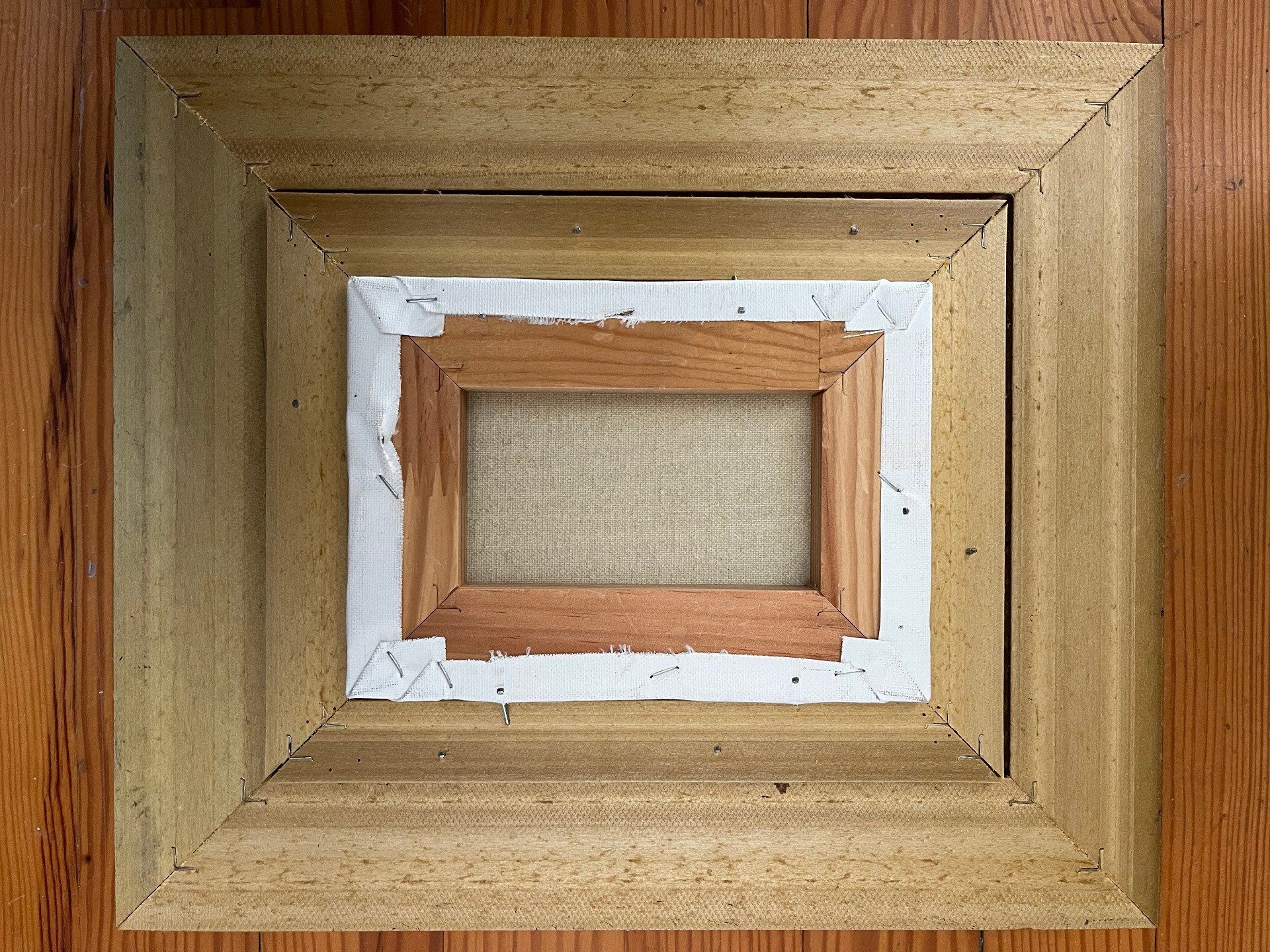Le tout est sublimé par un cadre en bois doré, élégant et travaillé, qui apporte une belle présence décorative.