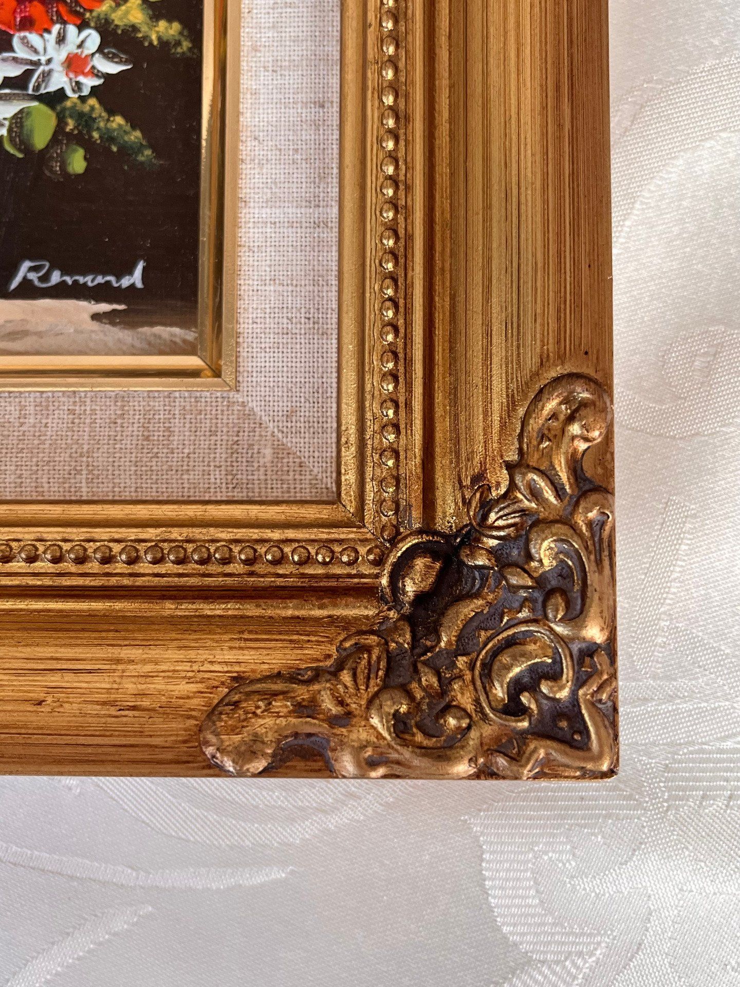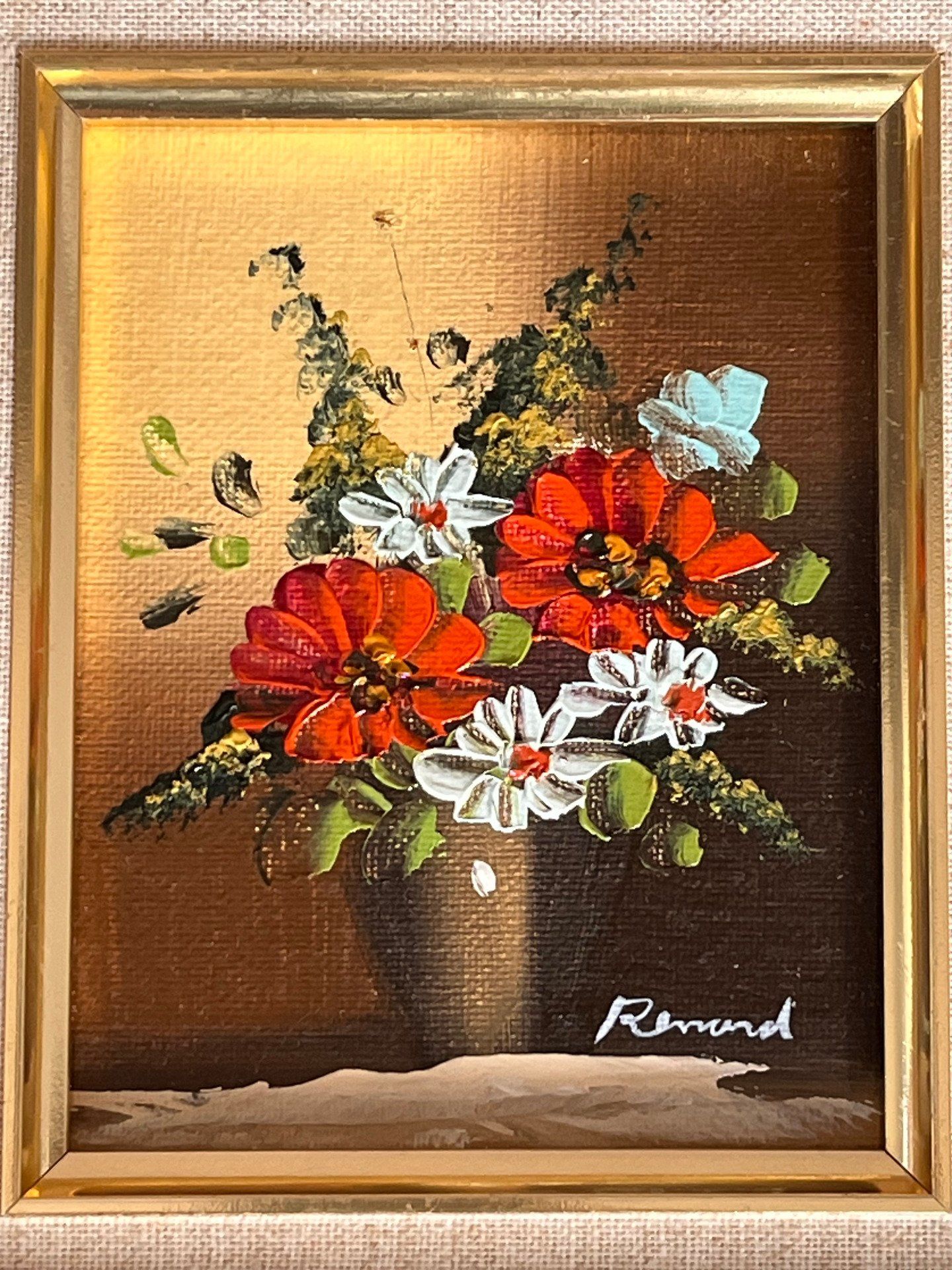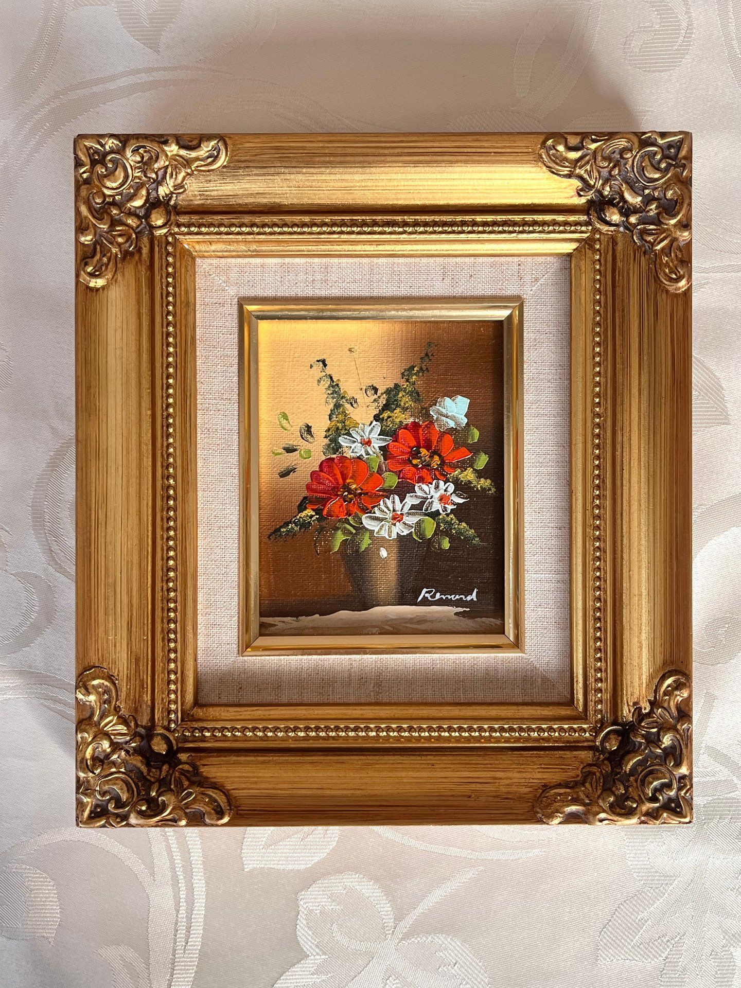 Ravissant bouquet de fleurs réalisé à l'huile sur toile, signé Renard. Le travail des reliefs et l'encadrement soigné en bois et lin font de cette œuvre un objet de décoration authentique et plein de charme. Voir description.