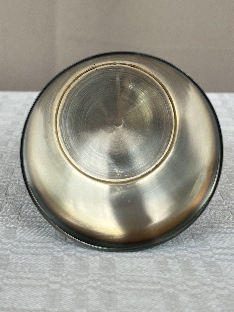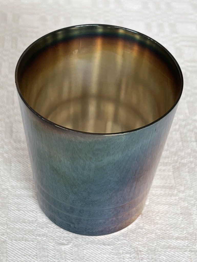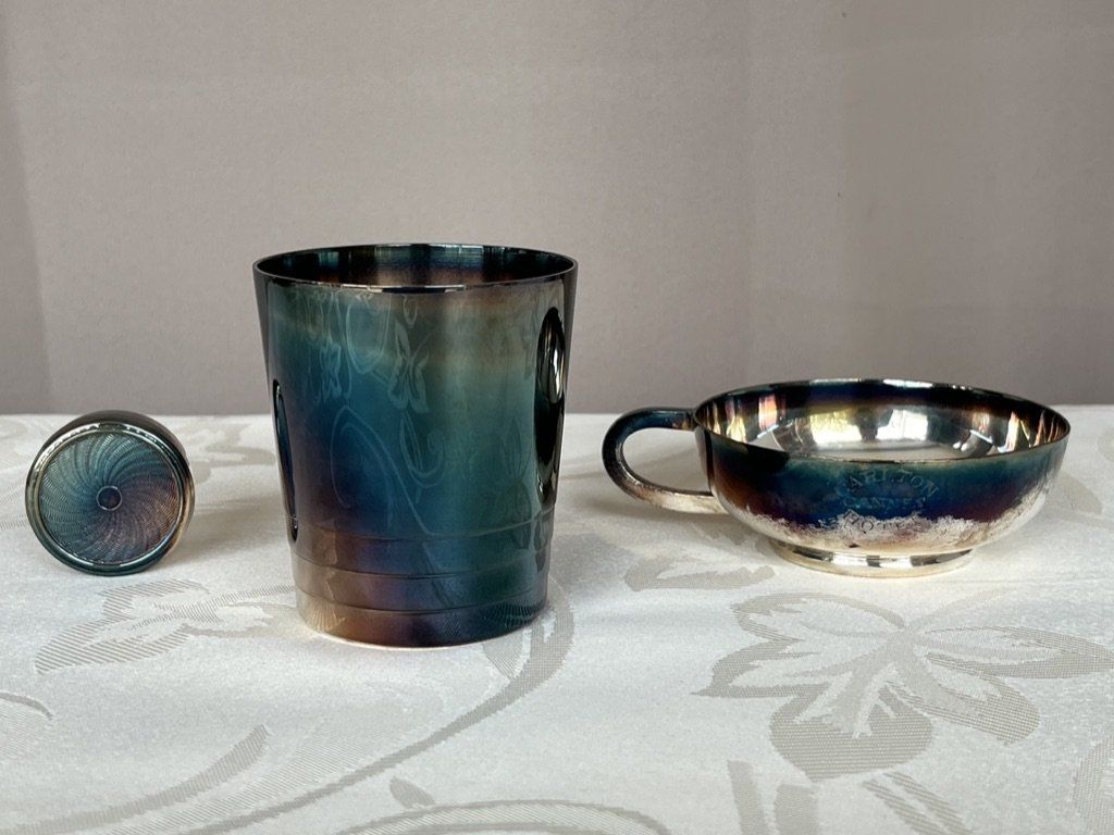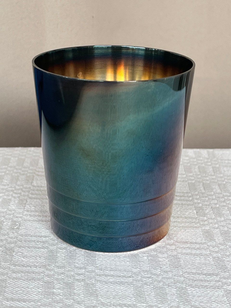 Gobelet en excellent état, éventuellement à nettoyer avec un produit spécial argent pour enlever son aspect vintage et son éclat bleuté.